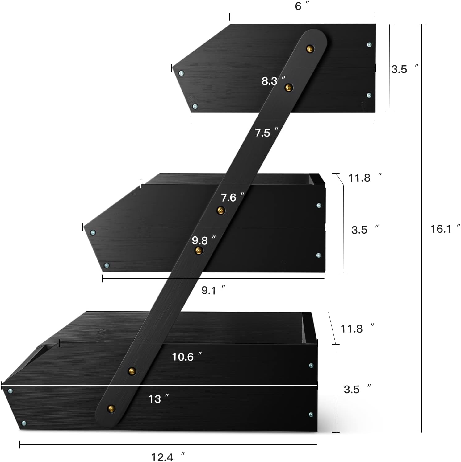 G.a HOMEFAVOR Large Bamboo Fruit Basket, 3 Tier Fruit Bowl for Kitchen Counter, Fruit Holder for Kitchen Countertop, Snack Fruit Vegetable Storage Basket Stand (BLACK)
