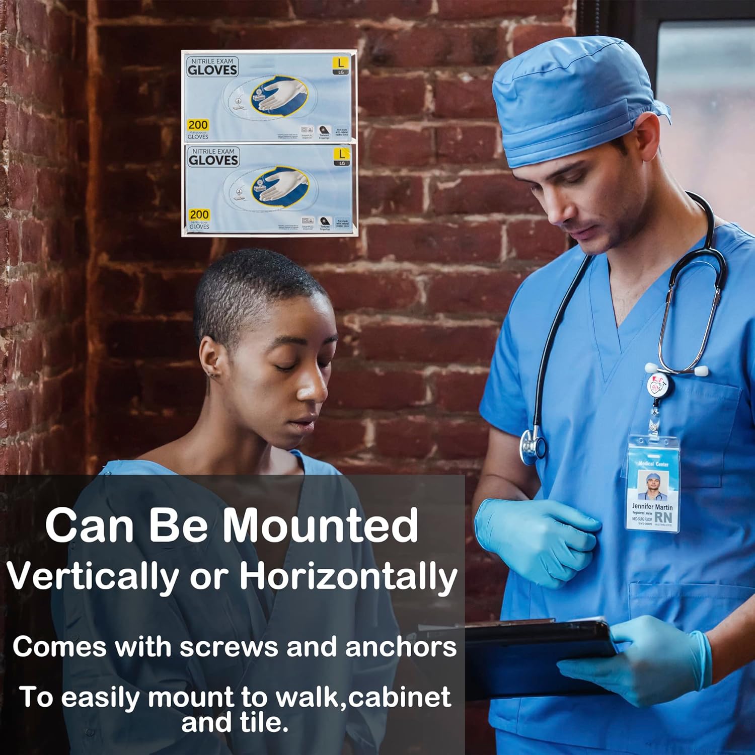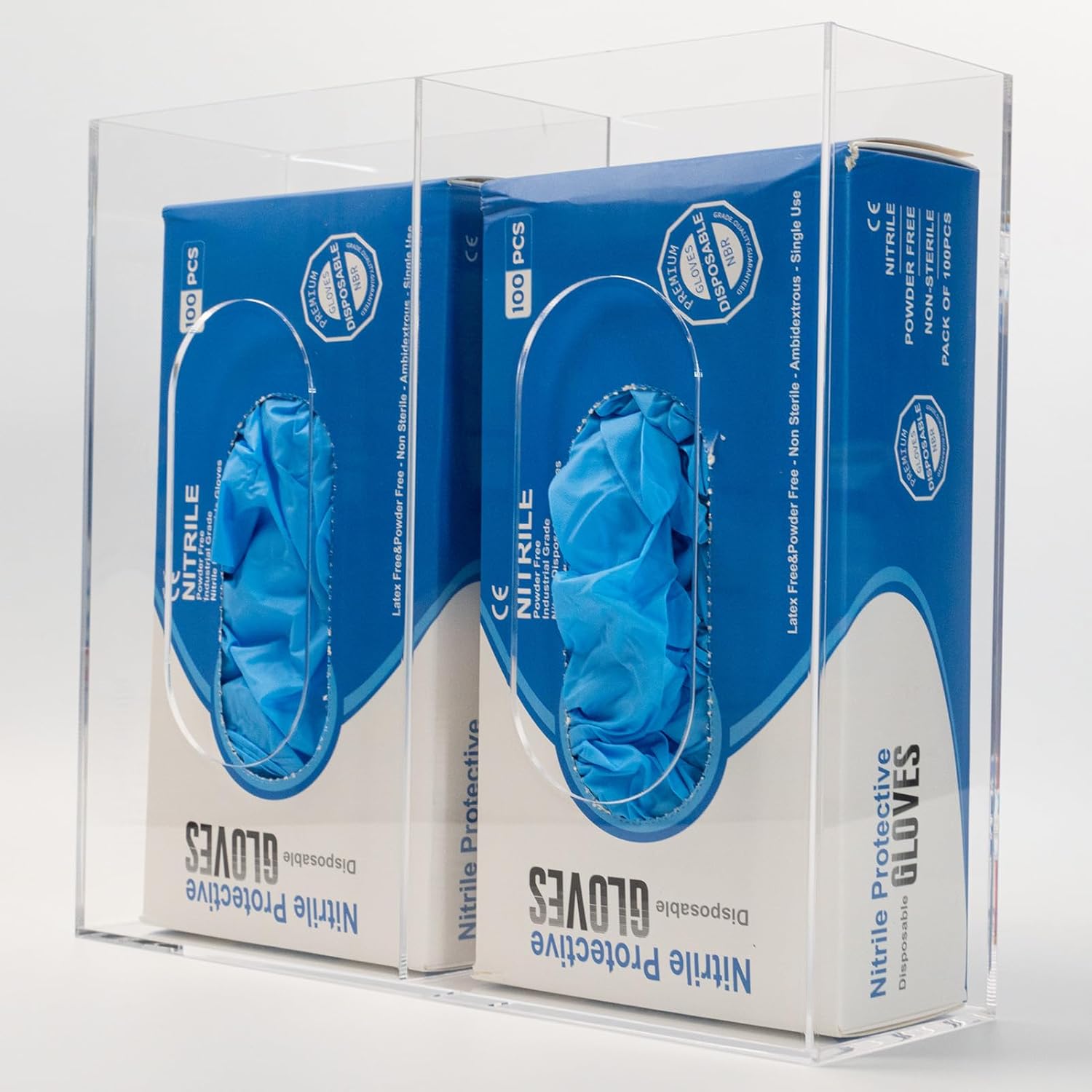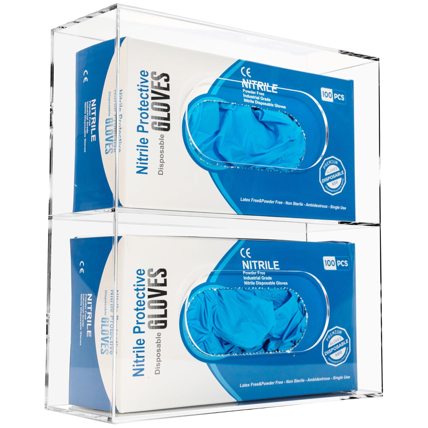 Glove Box Holder Dispenser Acrylic Double Side Loaded Clear Rack Storage Organizer for Medical, Latex, Rubber, Nitrile, Exam, Disposable Glove Boxes and Face Mask Holder Standing or Wall Mount