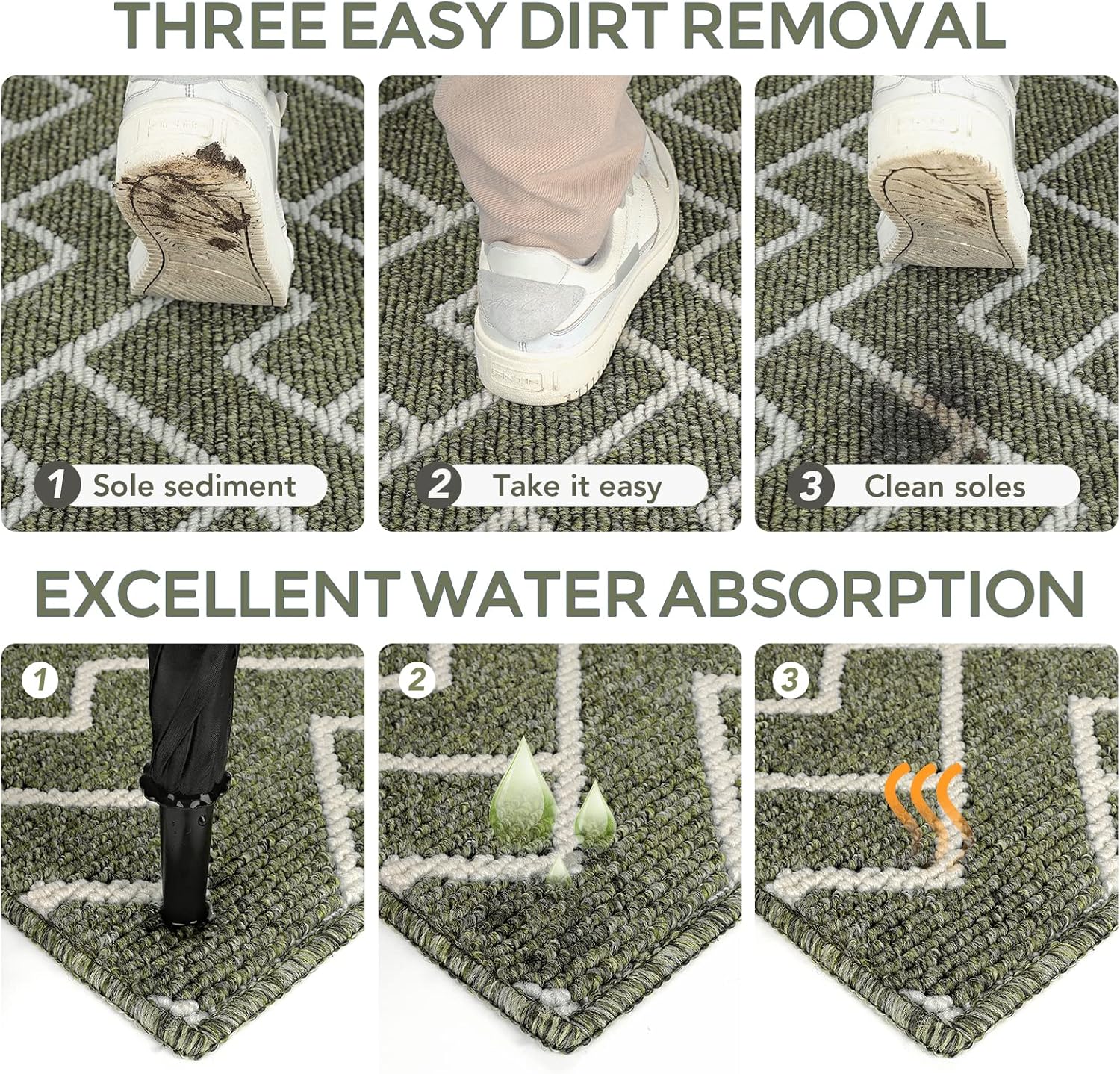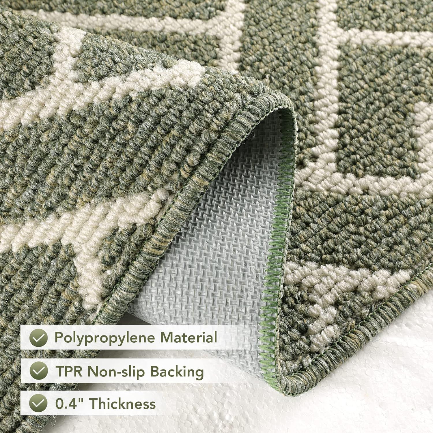 hicorfe Kitchen Rugs and Mats Sets,Super Absorbent Polypropylene Non-Slip Rug,Soft Comfort Floor Mat,Washable for Kitchen,Hallway,Office,Sink,Laundry(24" x 35",Green)