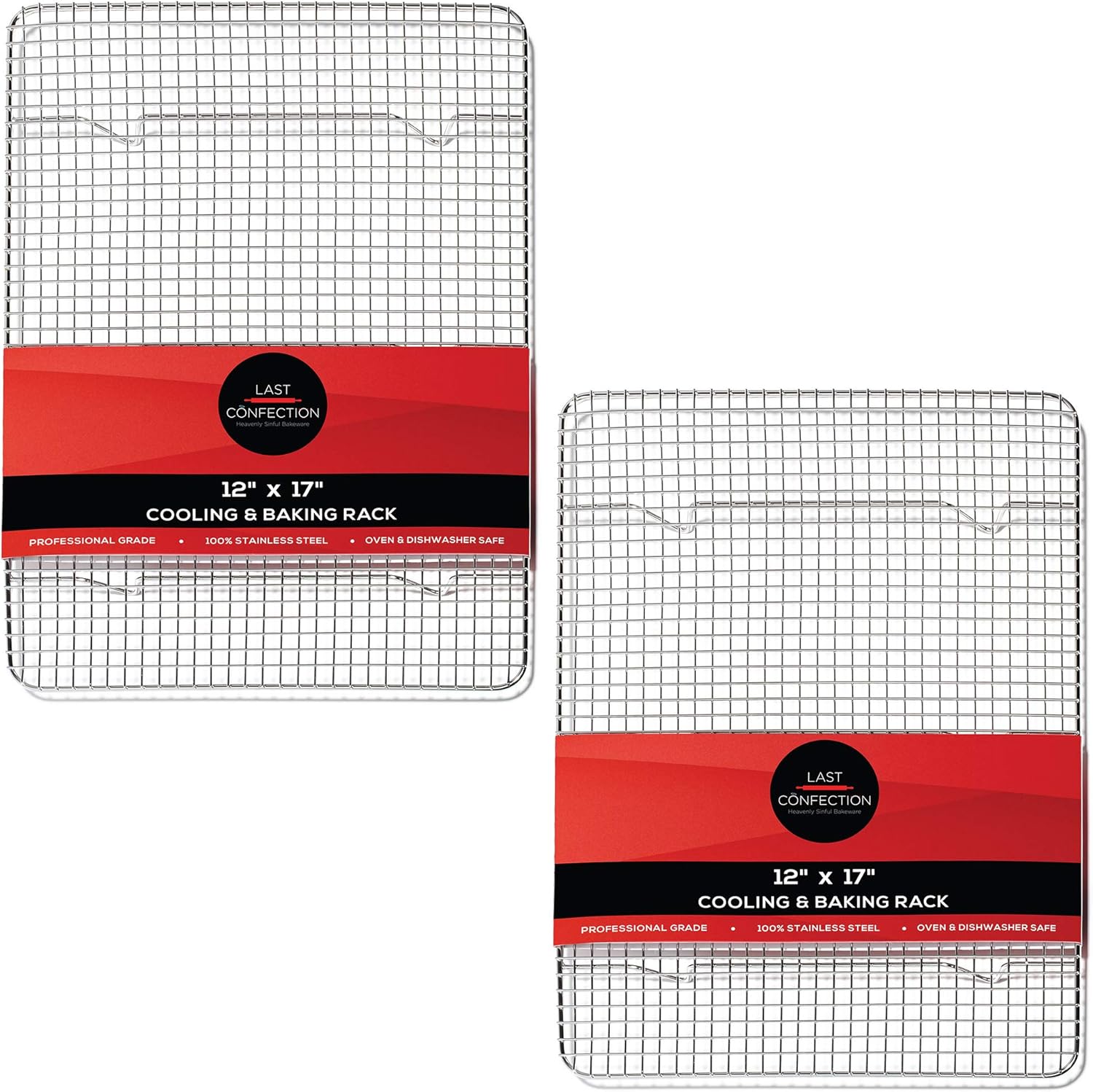 Last Confection (Set of 2) Stainless Steel 12" x 17" Baking & Cooling Racks (Fits Half Sheet Pan) - Cookie Baker's Oven Wire Rack