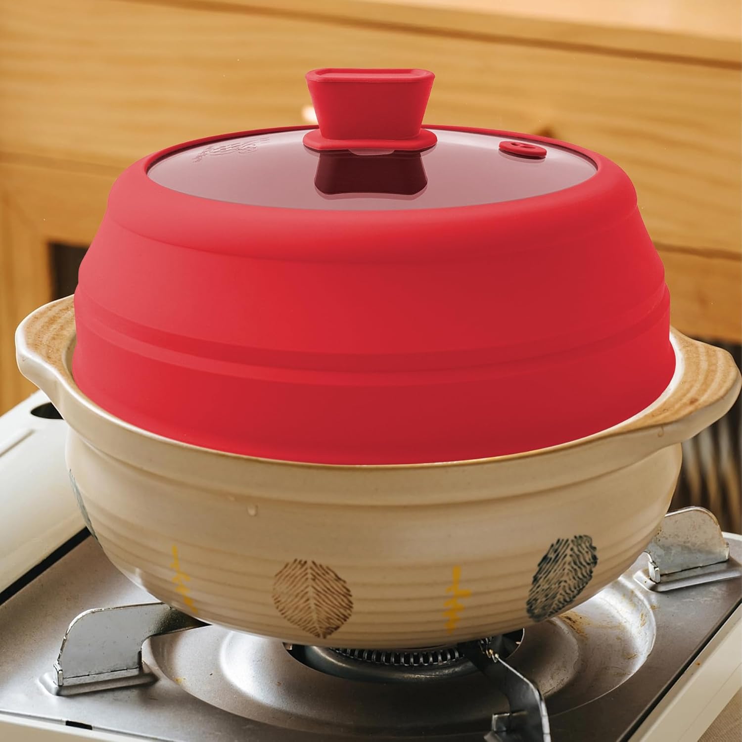 Microwave Splatter Cover Glass Microwave Cover for Food Collapsible Splatter Guard Lid with Silicone Handle for Pot Plate Bowl 9 Inch Red