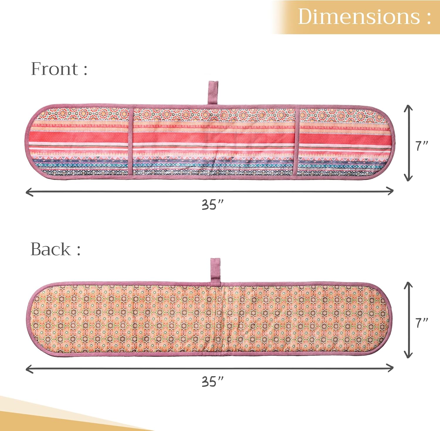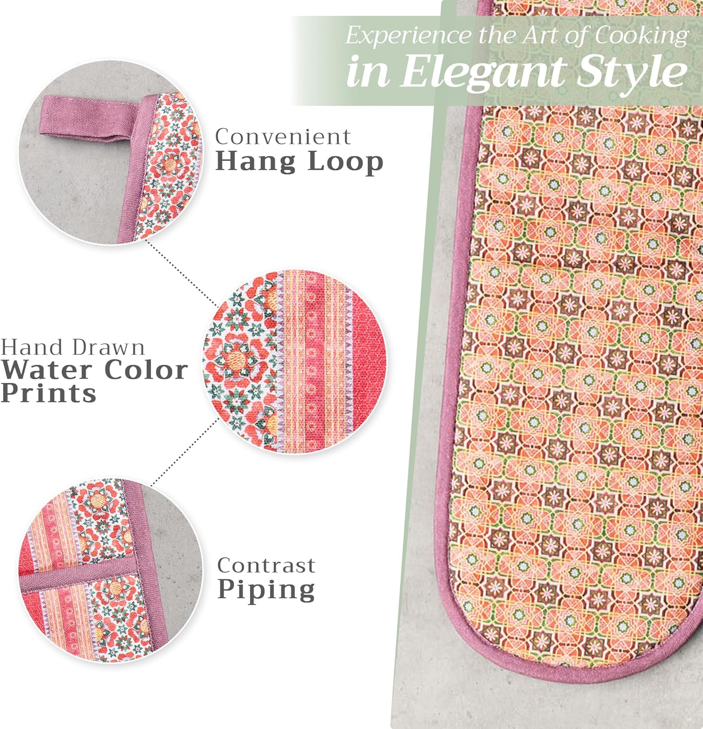 - Package includes: Includes 1 double oven mitt sized 7"x35". Perfect for handling hot cookware safely while adding a touch of European elegance to your kitchen. Designed in Europe and made in India with care