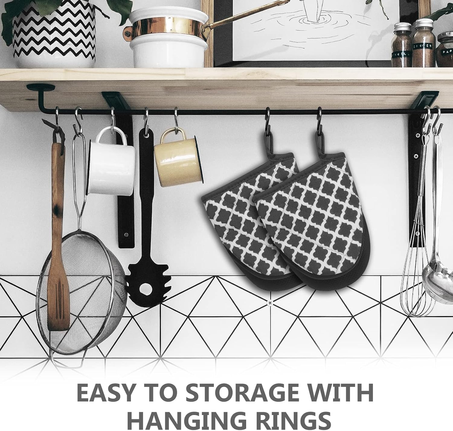 Qulable 1 Pair Short Oven Mitts - Silicone Kitchen Oven Gloves High Heat Resistant 500℉, Mini Oven Mits with Non-Slip Grip Surfaces and Hanging Loop for BBQ, Baking, Cooking and Grilling (Dark Gray)