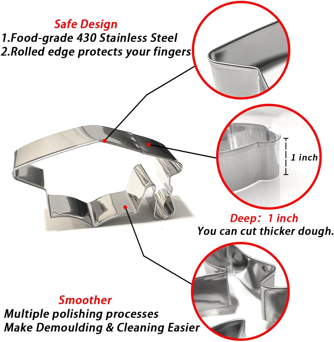 - 【High-quality Materials】: Our fondant cutter is made of 304 high-grade stainless steel, which is more sturdy and durable. The surface adopts multiple polishing process to make it very easy to demold and clean. Dishwasher safe, but we recommend hand washing.