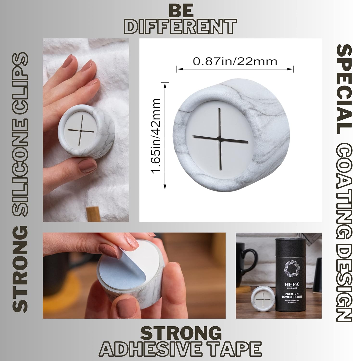 HEFA Towel Holder, Towel Hooks, Dish Towel Holder, Kitchen Organization, Bathroom Accesories, Kitchen Towel Hook, Kitchen Towel Holder, Hand Towel Holder, Kitchen Gadgets 4 Pack, White Marble