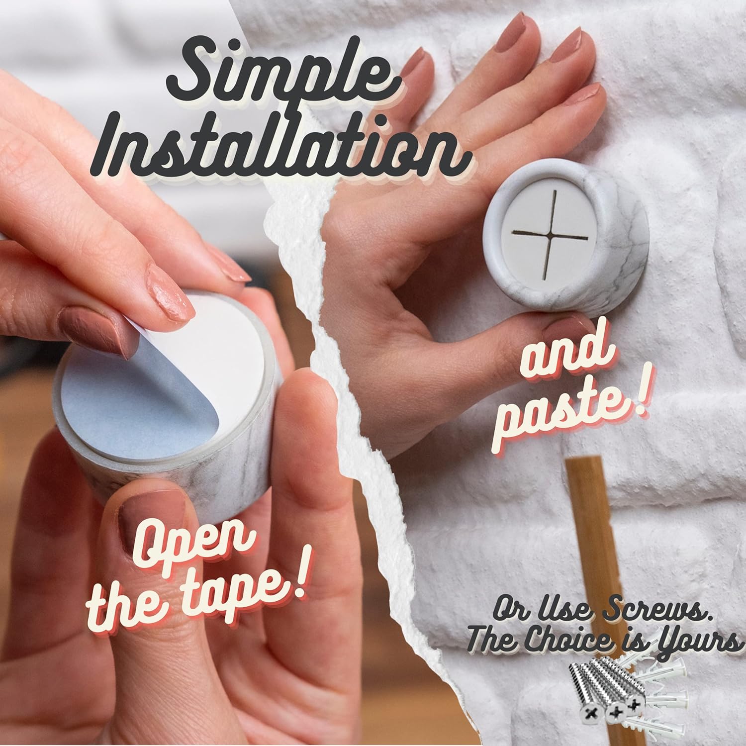 - Important Details - Our towel hooks come with screws (Kale Brand) and dowels, and self-adhesive tape (Orafol Brand) has been applied to the product. The double-sided tape is suitable for towels 2 pounds and lighter, but for heavier towels, it's recommended to mount with screws.