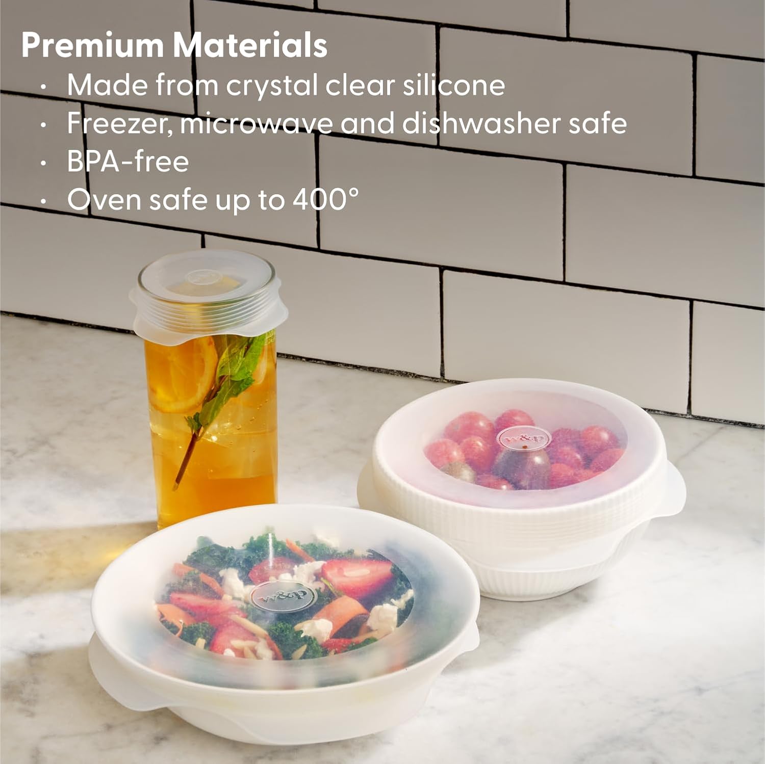 - THE BEST MATERIALS: Crafted from premium clear-view silicone, these lids stretch and cling to a variety of bowls and cans so you can keep food fresh and airtight. They're even oven-safe!