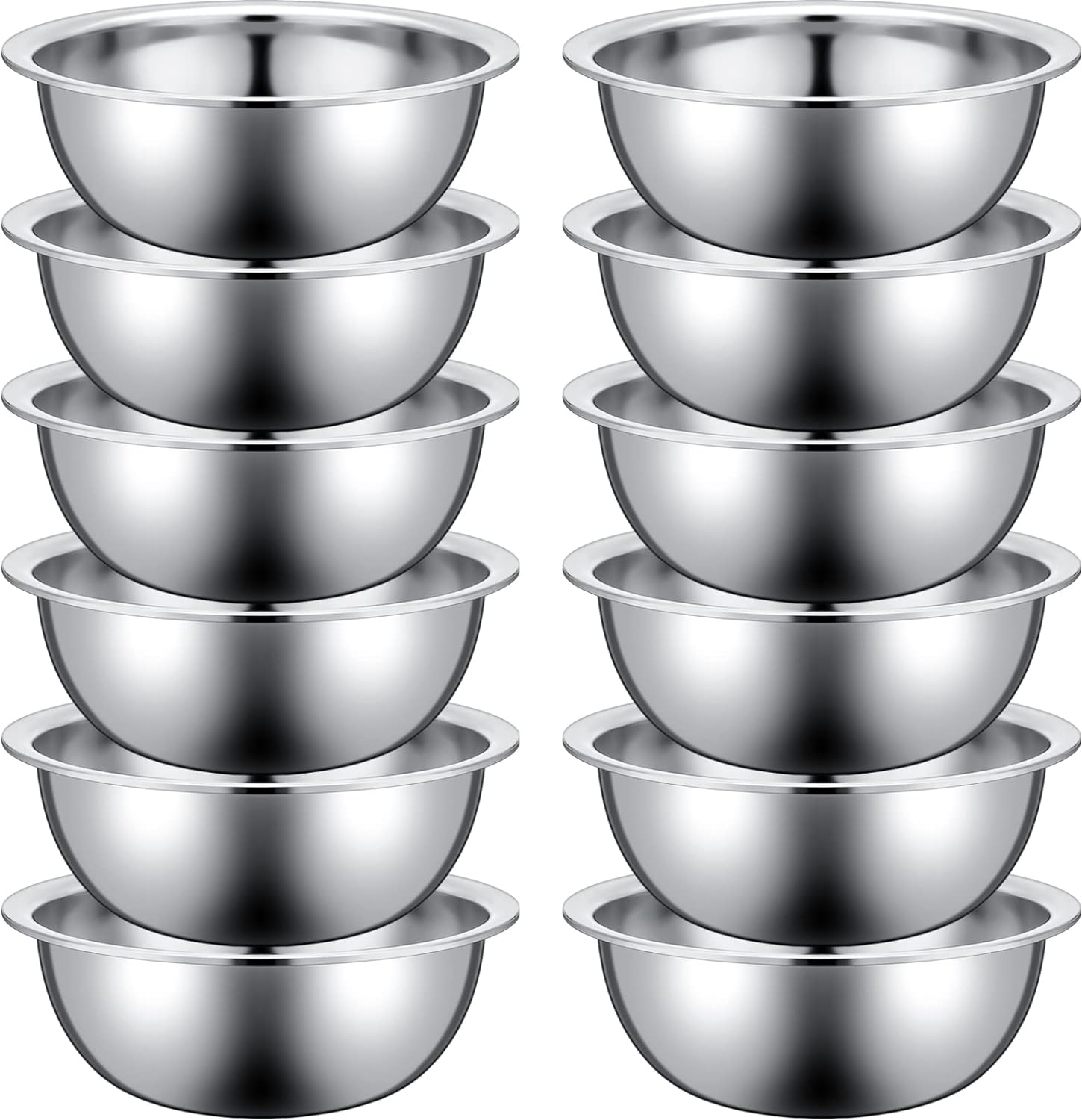 - Stainless Steel Mixing Bowl Set: what you will receive are 12 pieces of stainless steel bowls for mixing in silver color, metal food prep bowls are about 8.66 x 8.66 x 3 Inches/ 22 x 22 x 7.7 cm, which can be applied as both baking mixing bowls and serving bowls adequate quantity can well meet your daily use, replacement and sharing demands