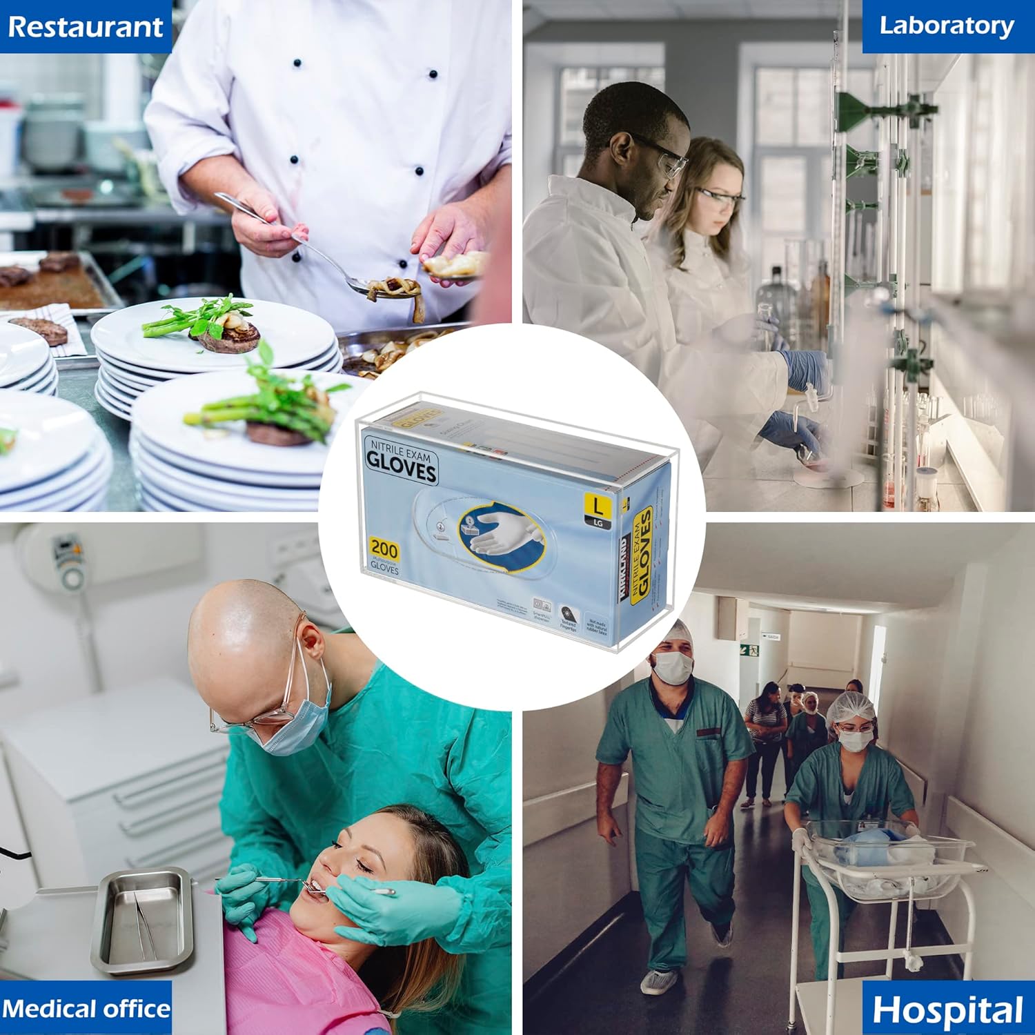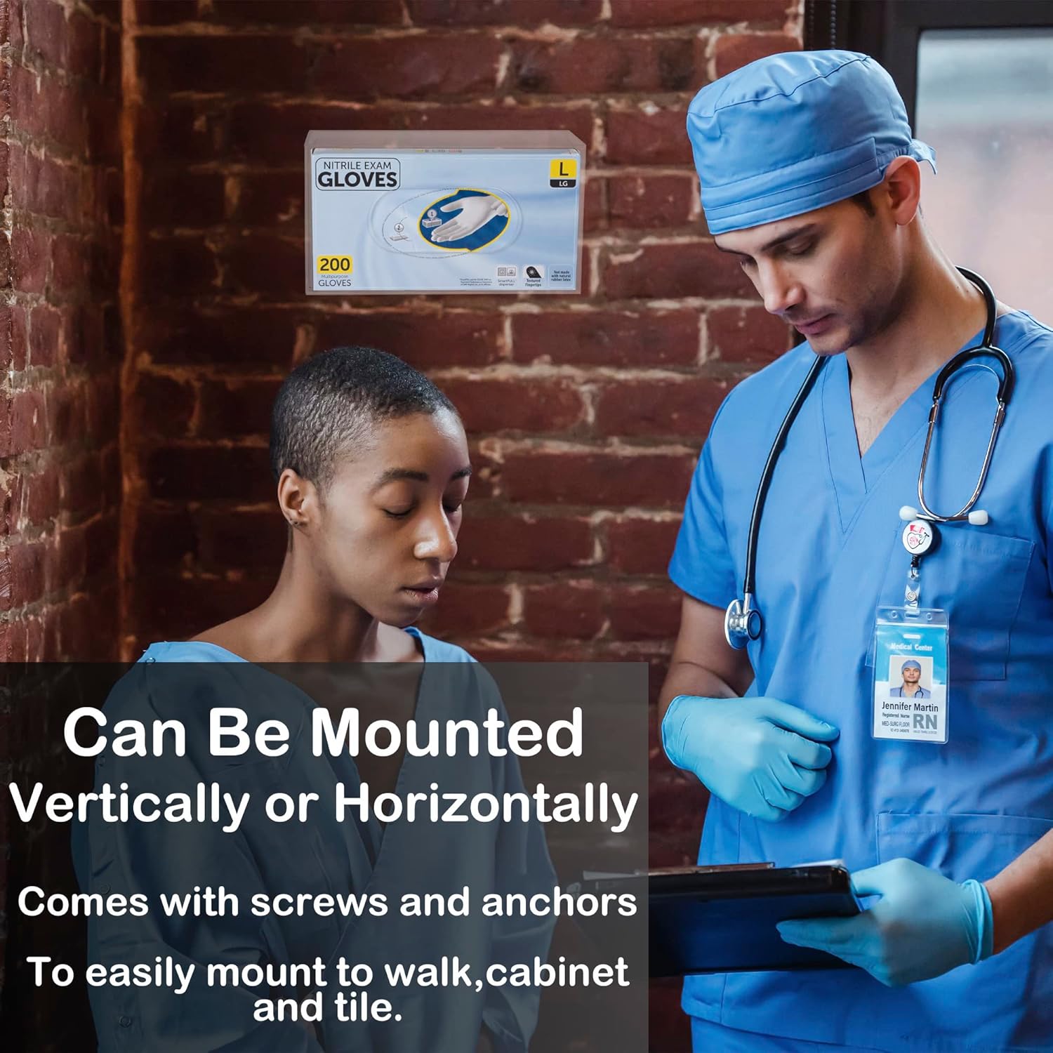 Glove Box Holder Dispenser Acrylic Single Side Loaded Clear Rack Storage Organizer for Medical, Latex, Rubber, Nitrile, Exam, Disposable Glove Boxes and Face Mask Holder Standing or Wall Mount