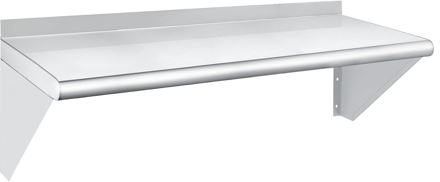 - 【WIDE APPLICATION】- Our stainless steel shelf wall mounted offers a versatile storage solution for various applications. Whether you need additional storage space in your kitchen, pantry, garage, workshop, laundry room, or even commercial settings such as restaurants, cafes, or offices, this shelf can accommodate your storage needs. Save your space and make effective use of wall space.