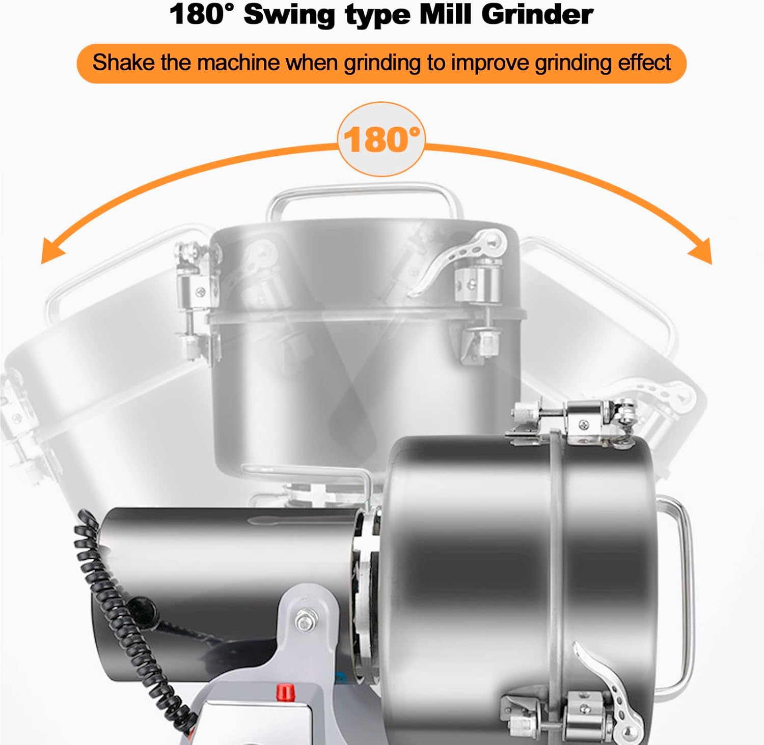- 180° Swing type Mill Grinder:The electric grain grinder swing type design not only improves grinding effects but also makes pouring more convenient,normal grains only needs 30s to be ground,except hard material takes 2-3min to grind.