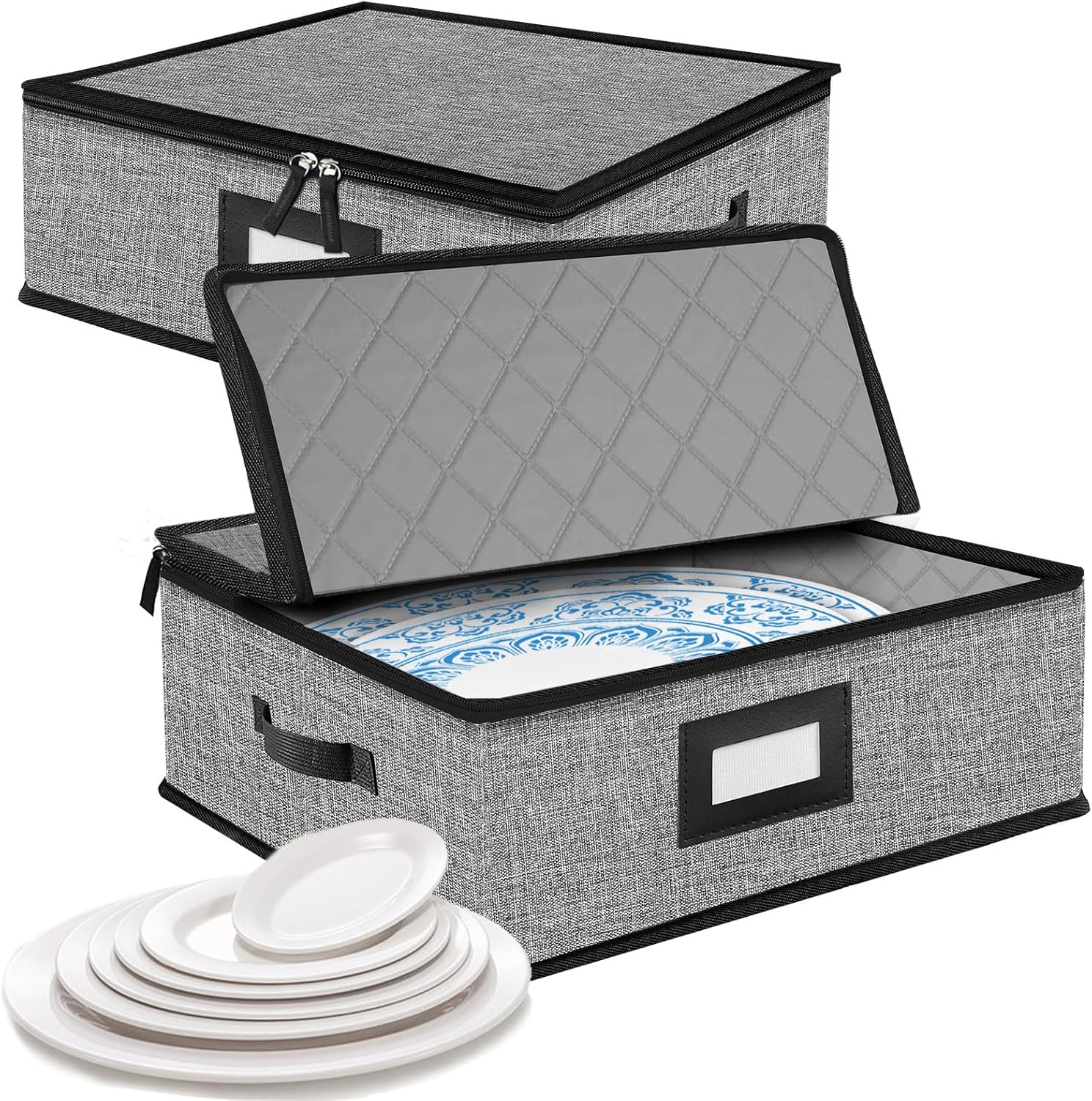 Quilted Platter Storage Case 2PACK-Fine China Storage Containers Hard Shell for Organizing,Stackable Plate Storage Containers with 8 Felt Dividers,dinnerware Storage,Moving Box,Moving Supplies