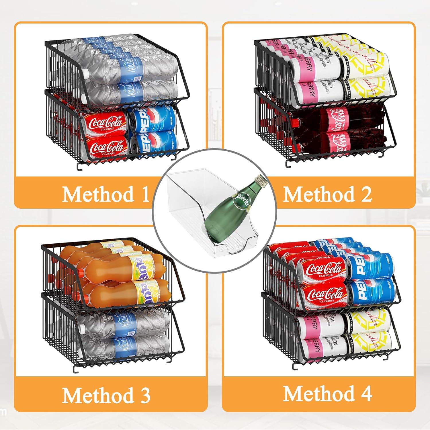 GILLAS 2 Pack Stackable Soda Can Organizer with Dividers for Refrigerator, Can Holder Dispenser Canned Food Organizer, Beverage Storage Basket Rack Drink Organizer for Fridge, Kitchen, Pantry, Black