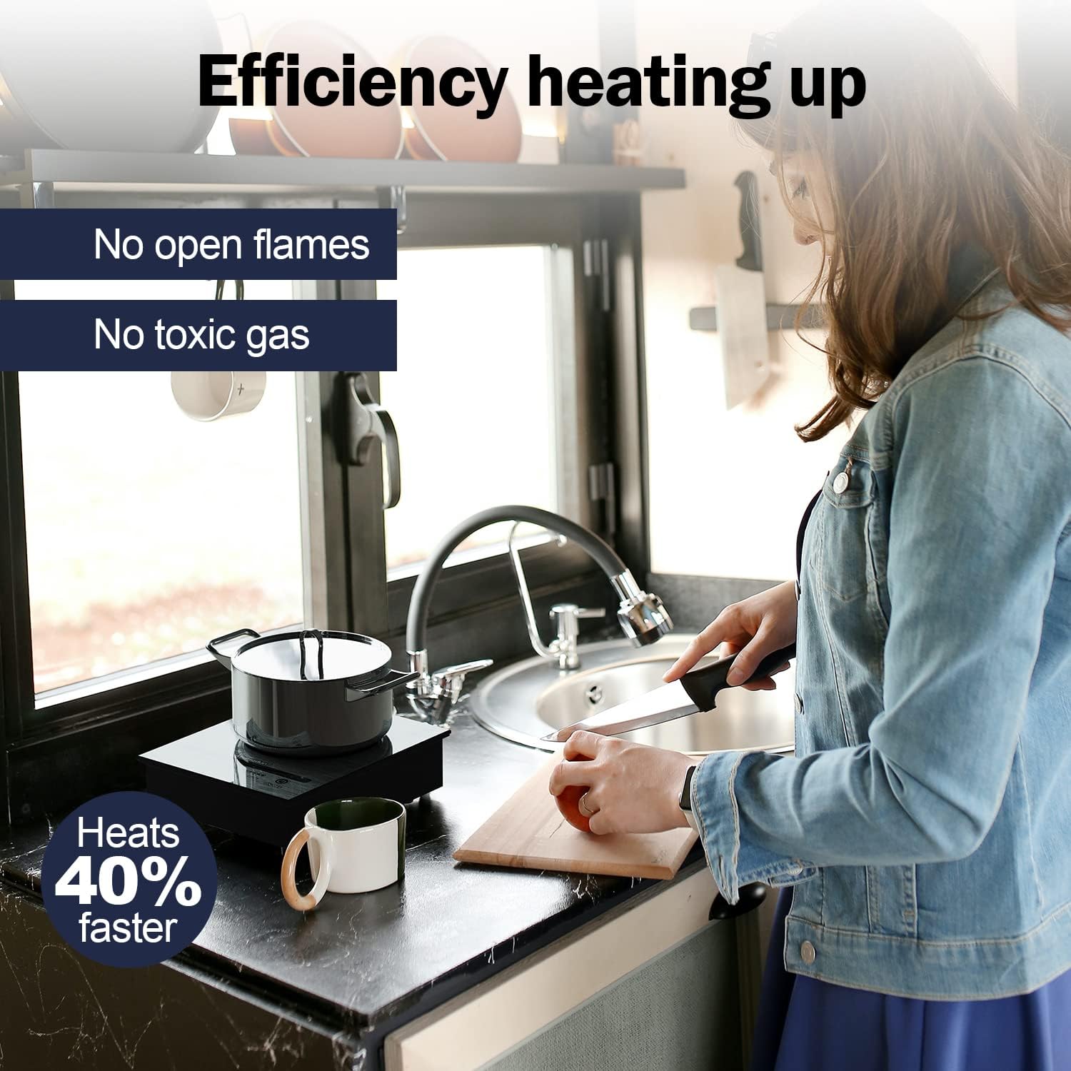 - 【FAST AND SAFE】FCC approved.This Mini induction cooktop for travel with max 500W, heat 0.8QT of water from 79°F to boiling in just 15 minutes.Can be heated evenly for a long time(Does not working cyclic/pulse).high rate heats faster than a normal electric burner, hot plate, oven or a cooktop stove at the same power.When the temperature is overheating or the pan is off the surface, the induction burner will stop working.