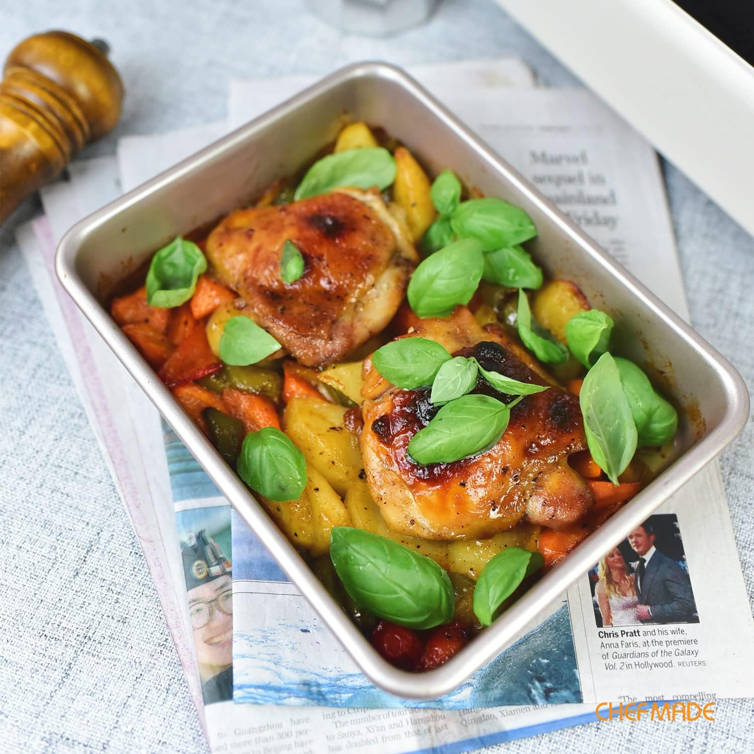 CHEFMADE 8.7-Inch Rectangle Cake Pan, Non-Stick Deep Dish Bakeware for Oven Baking (Champagne Gold)