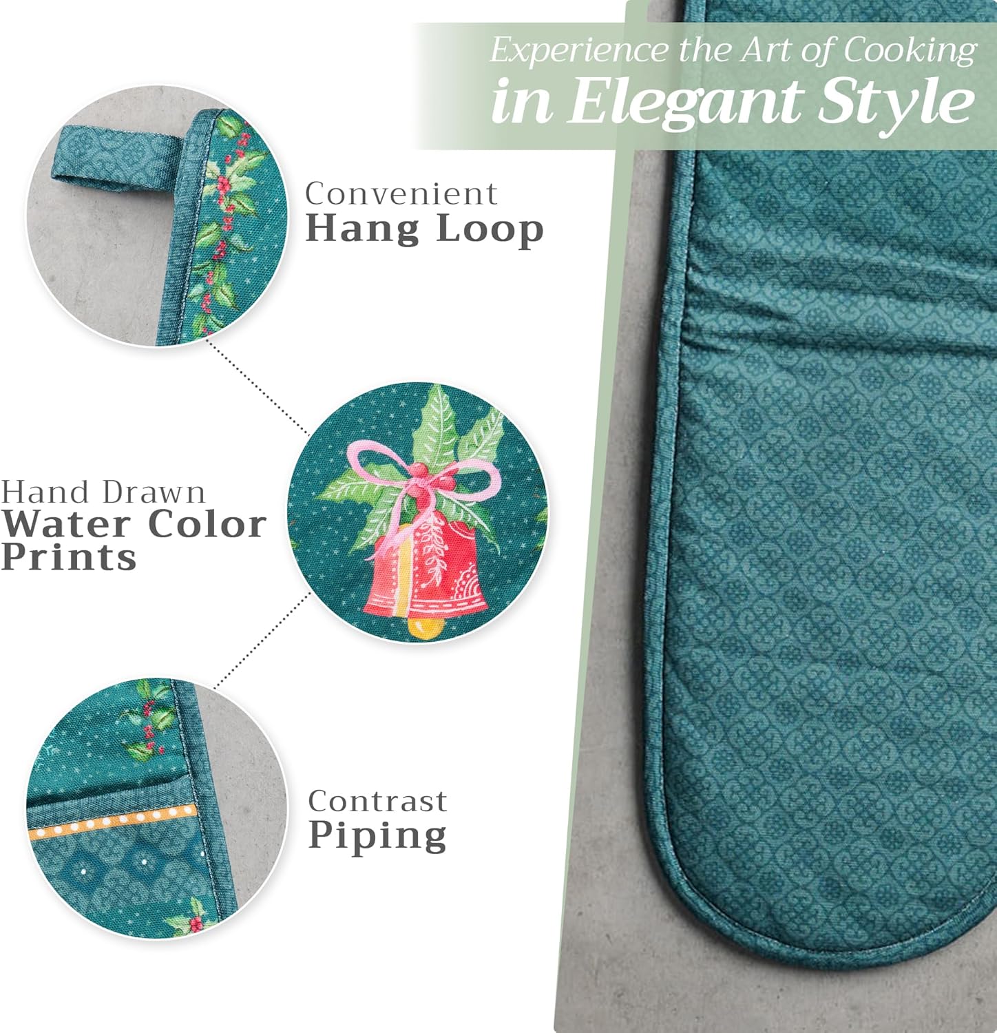 - 100% Quilted cotton: Crafted from premium quilted cotton for superior heat resistance and durability. This double oven mitt offers a soft, flexible grip and protects your hands during baking, roasting, or grilling