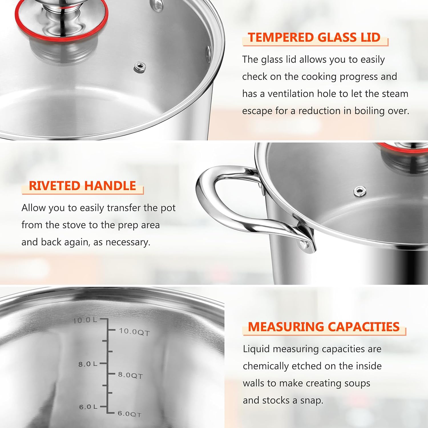 - TEMPERED GLASS LID - Tight-fitting tempered glass lid locks moisture and flavors in your food, Safer than normal glass and allow you easily check on the cooking progress, Ventilation hole lets steam escape for a reduction in boiling over to prevent spillage, Round metal knob fastened with rivets for comfortable and safe grip