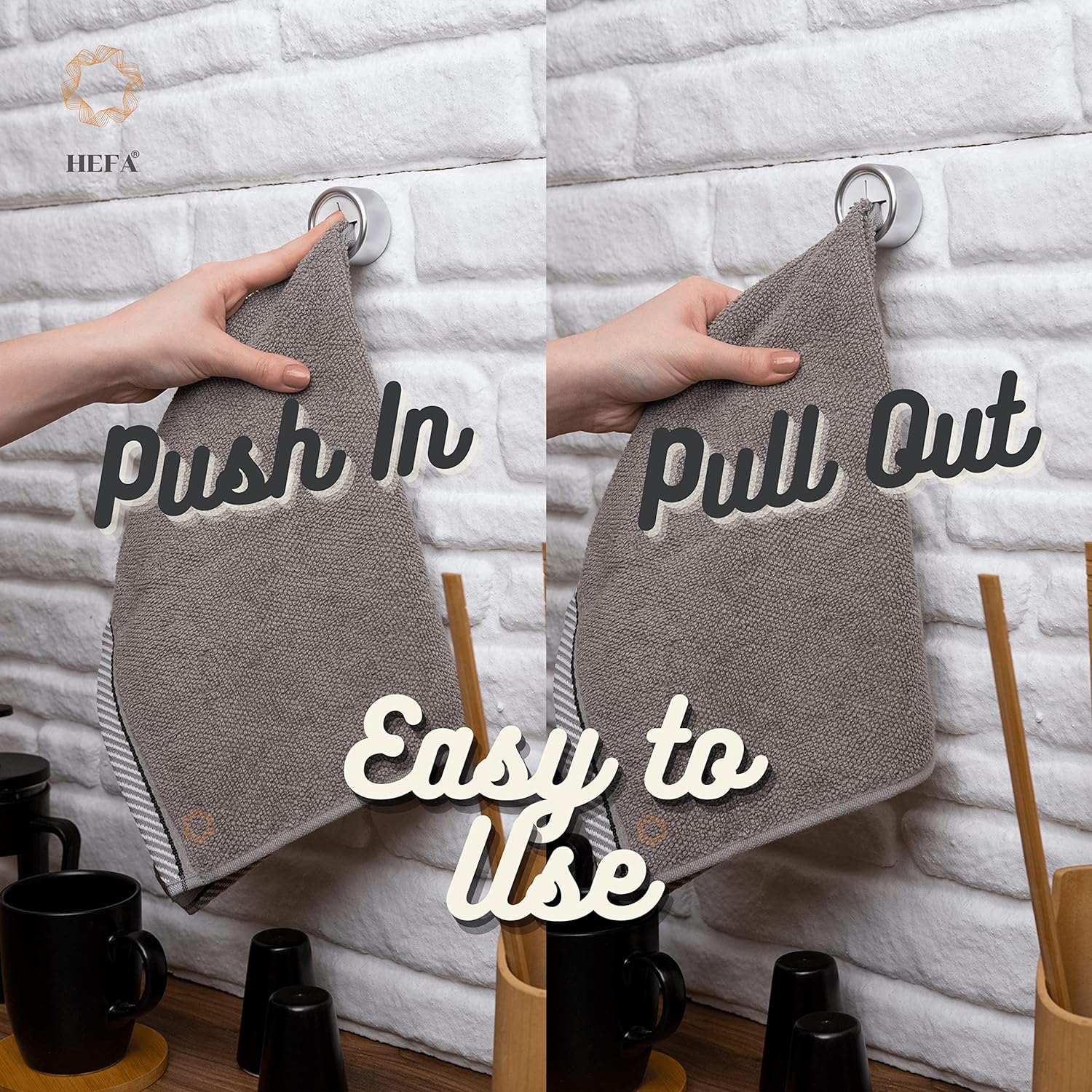 - Effortless Organization - Our practical towel hooks are versatile and easy to use. Hang hand towels, dishcloths, gloves, aprons, and more in your kitchen or bathroom. The silicone grips use a physical buckle principle to hold towels tightly without causing damage. Simply push and release to add or remove your towel.