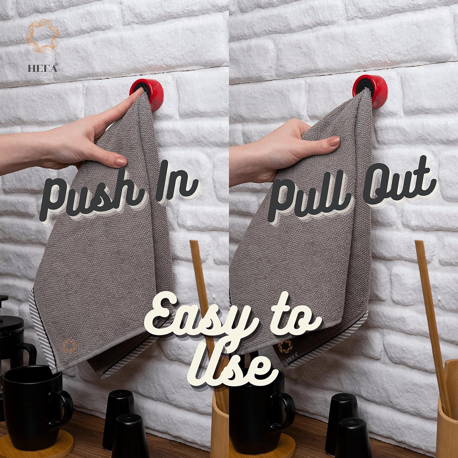 - Effortless Organization - Our practical towel hooks are versatile and easy to use. Hang hand towels, dishcloths, gloves, aprons, and more in your kitchen or bathroom. The silicone grips use a physical buckle principle to hold towels tightly without causing damage. Simply push and release to add or remove your towel.