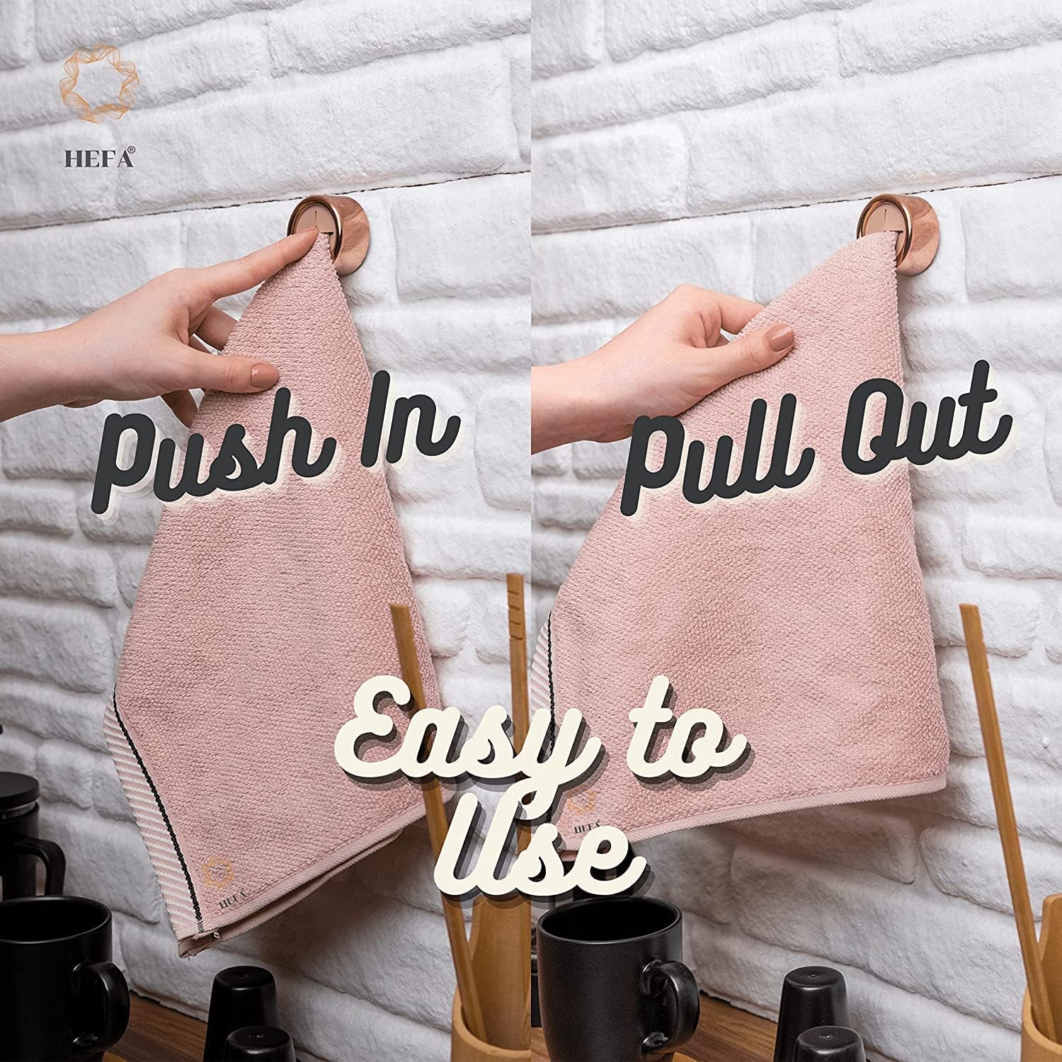 - Effortless Organization - Our practical towel hooks are versatile and easy to use. Hang hand towels, dishcloths, gloves, aprons, and more in your kitchen or bathroom. The silicone grips use a physical buckle principle to hold towels tightly without causing damage. Simply push and release to add or remove your towel.