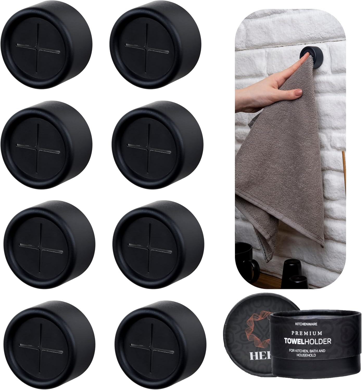 HEFA Towel Holder, 8 Pack Modern Kitchen Towel Hooks, Plastic, Chrome, Wall Mount, Towel Organizer, Kitchen and Bathroom Organization, 2 lbs Weight Capacity