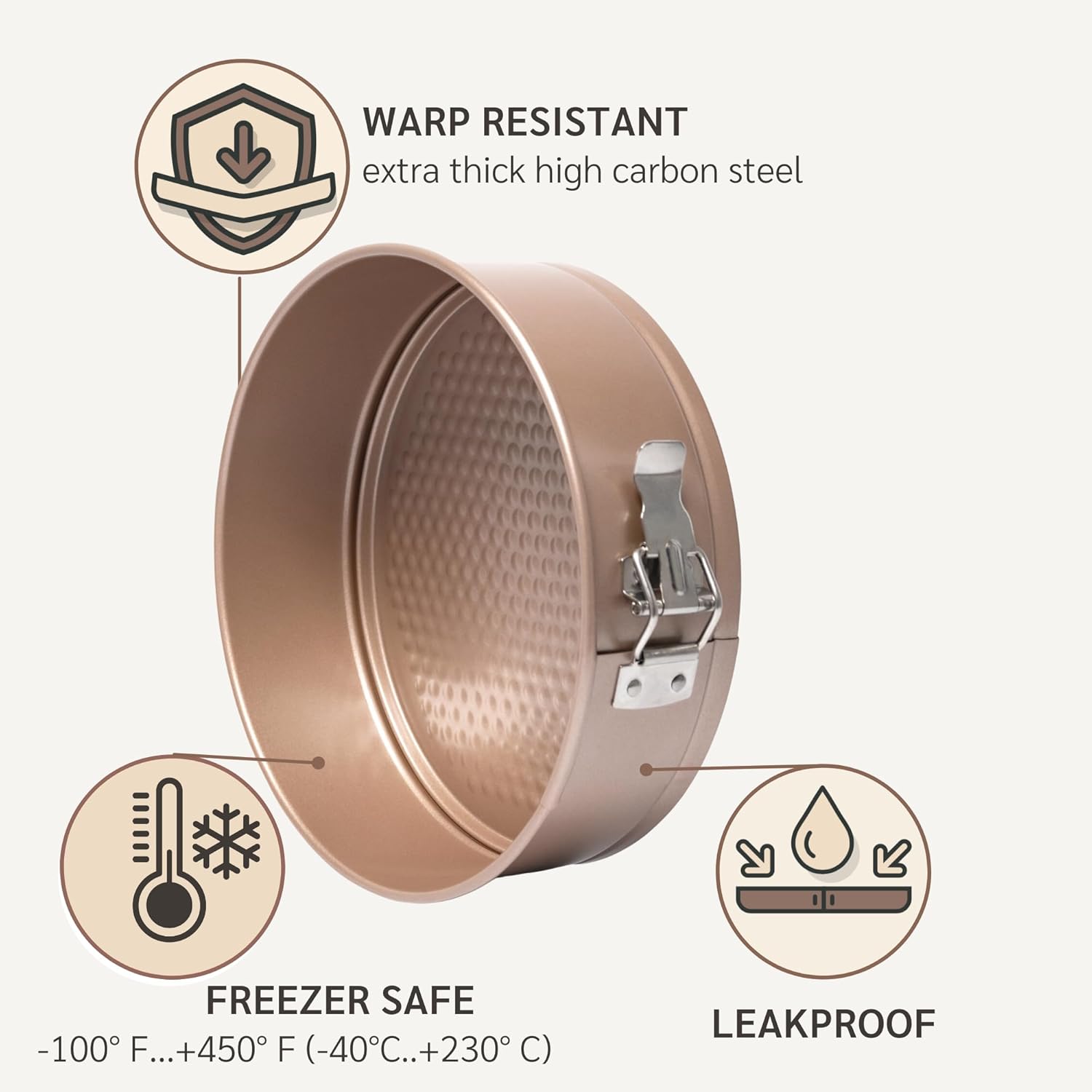 - 🎁 We know our way around the cake - these non stick spring form pans for baking are best gift for bakers. HAPPIELS elegant champagne gold nonstick round cake pans are not only lovely to look at, they are top quality and bake like a dream.