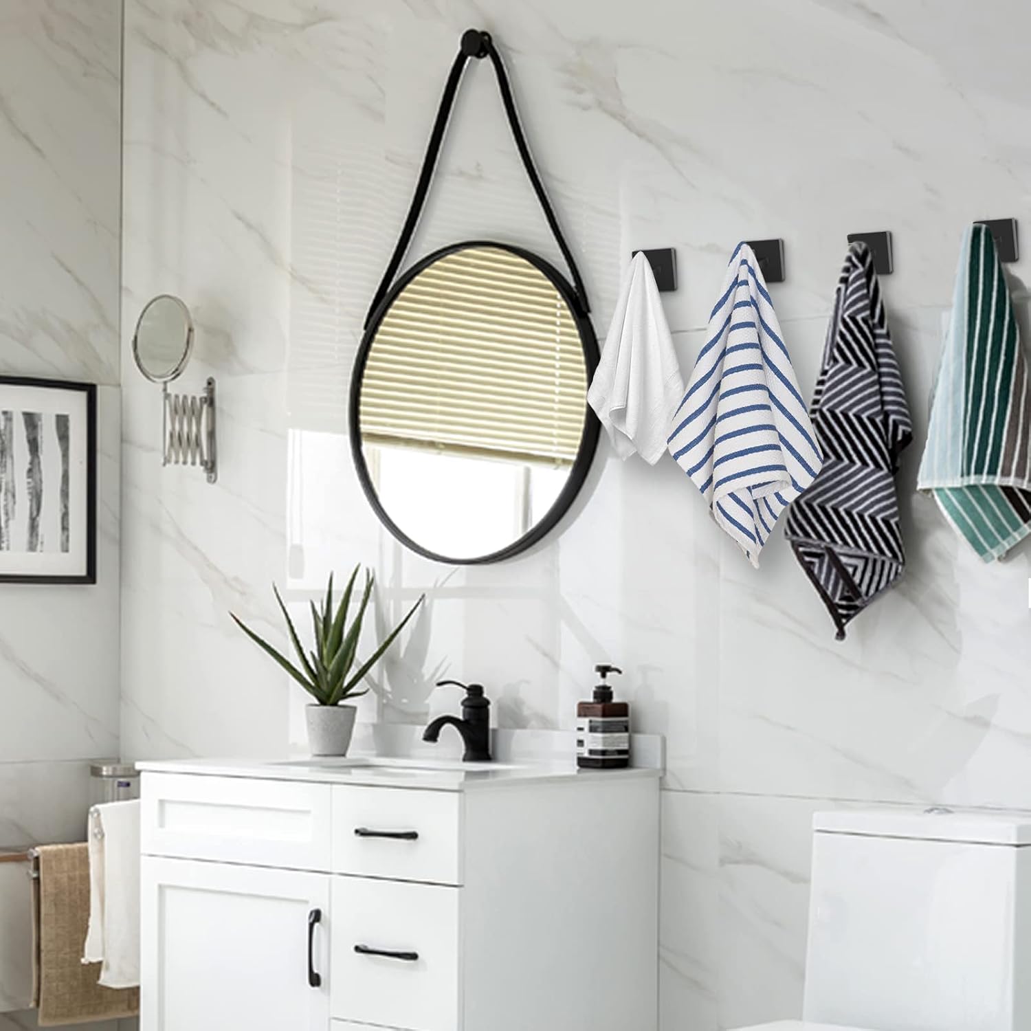 IBosins 4 Pack Towel Hooks Hand Towel Holder for Bathroom Wall Livingroom Bedroom Kitchen Closet Heavy Duty Stainless Steel Hook Hanger for Robe, Bath Towel, Coat (Square Matte Black)