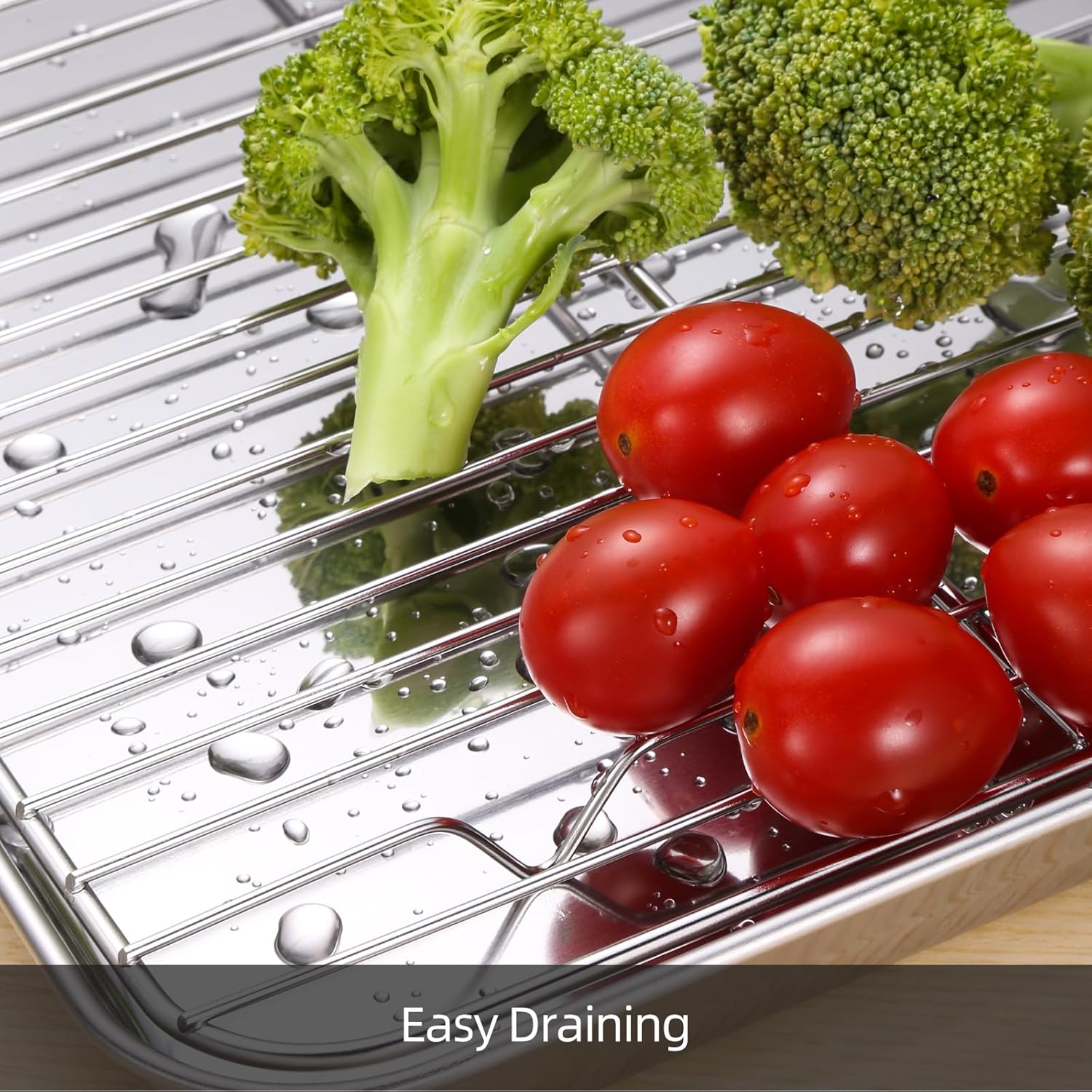 - HEALTHY MATERIAL:Amrules baking pans and racks are made from high quality stainless steel, which is rust and warp resistant and durable. There is no chemical coating and any other toxic materials, safe for your family’s daily use.