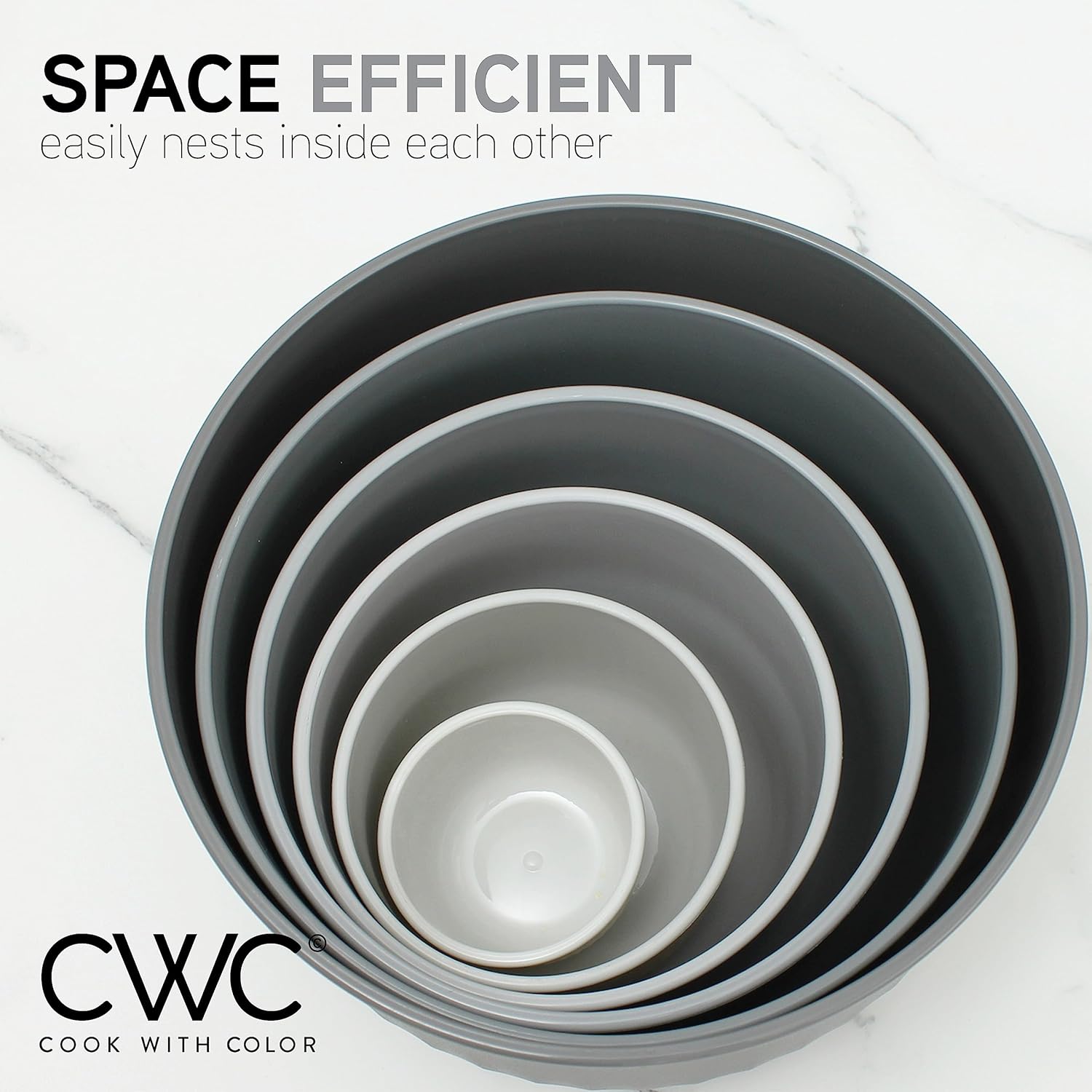 - Cook with Color 12 piece plastic mixing bowl set - non slip bowls with lids; easy to clean, sturdy mixing bowls.