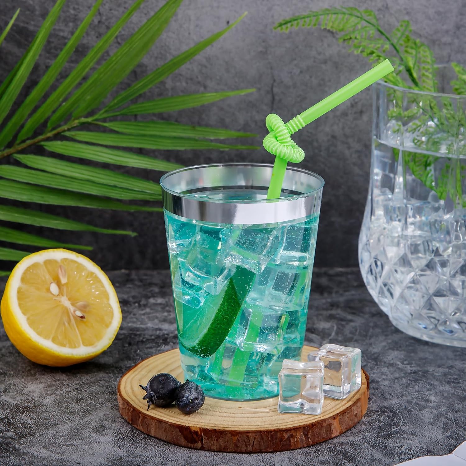 - ELEGANT APPEARANCE: The 10 oz disposable clear plastic cups with silver trim are crystal clear all over, presenting a high-end appearance for a good clear visibility. The silver appearance and luster make these silver disposable cups look more upscale in any setting.