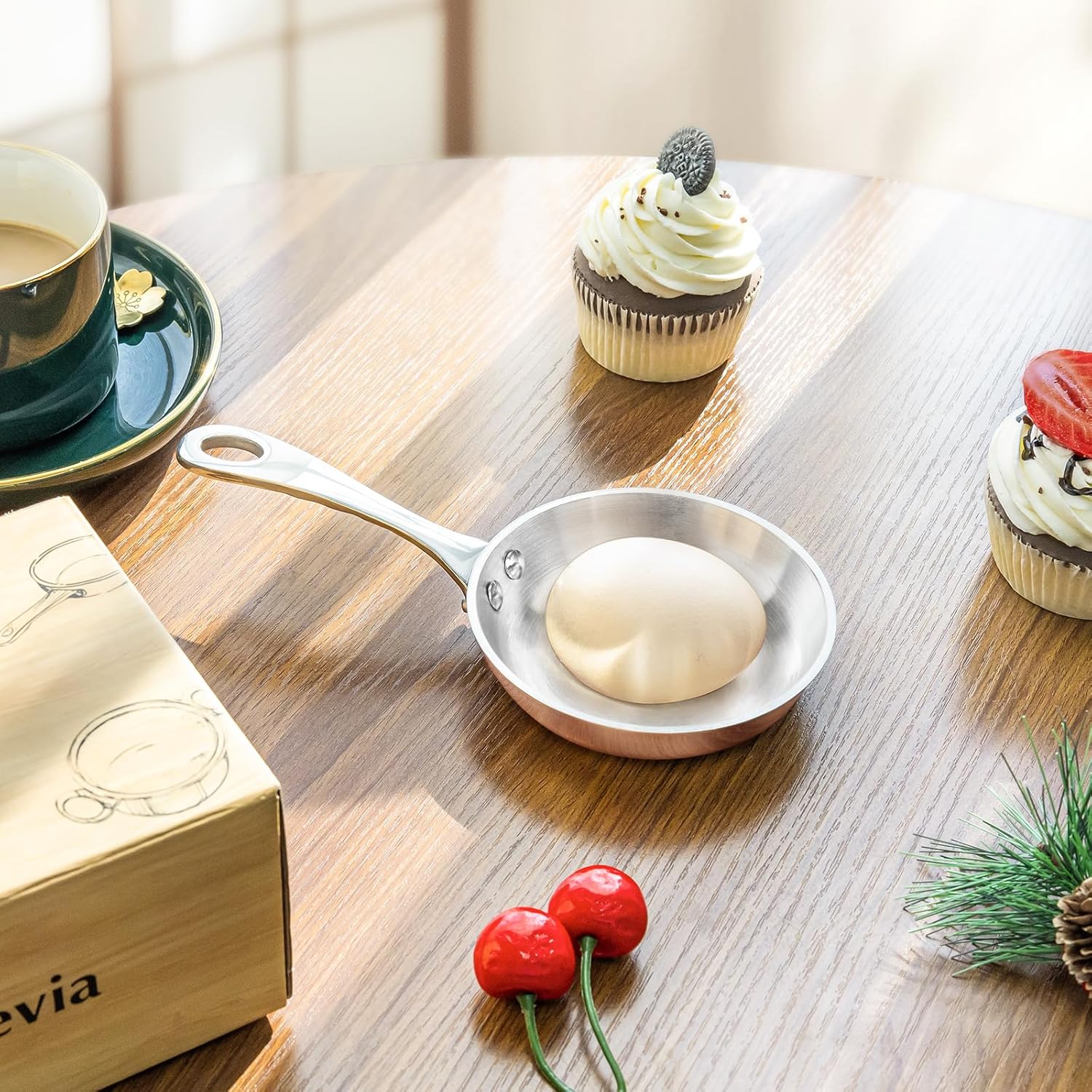 Macevia Mini Sauce Pan,Copper Stainless Steel Butter Warmer Small Pot with Handle, Multipurpose Use for Home Kitchen or Restaurant (0.12 Quart/4 Inch)