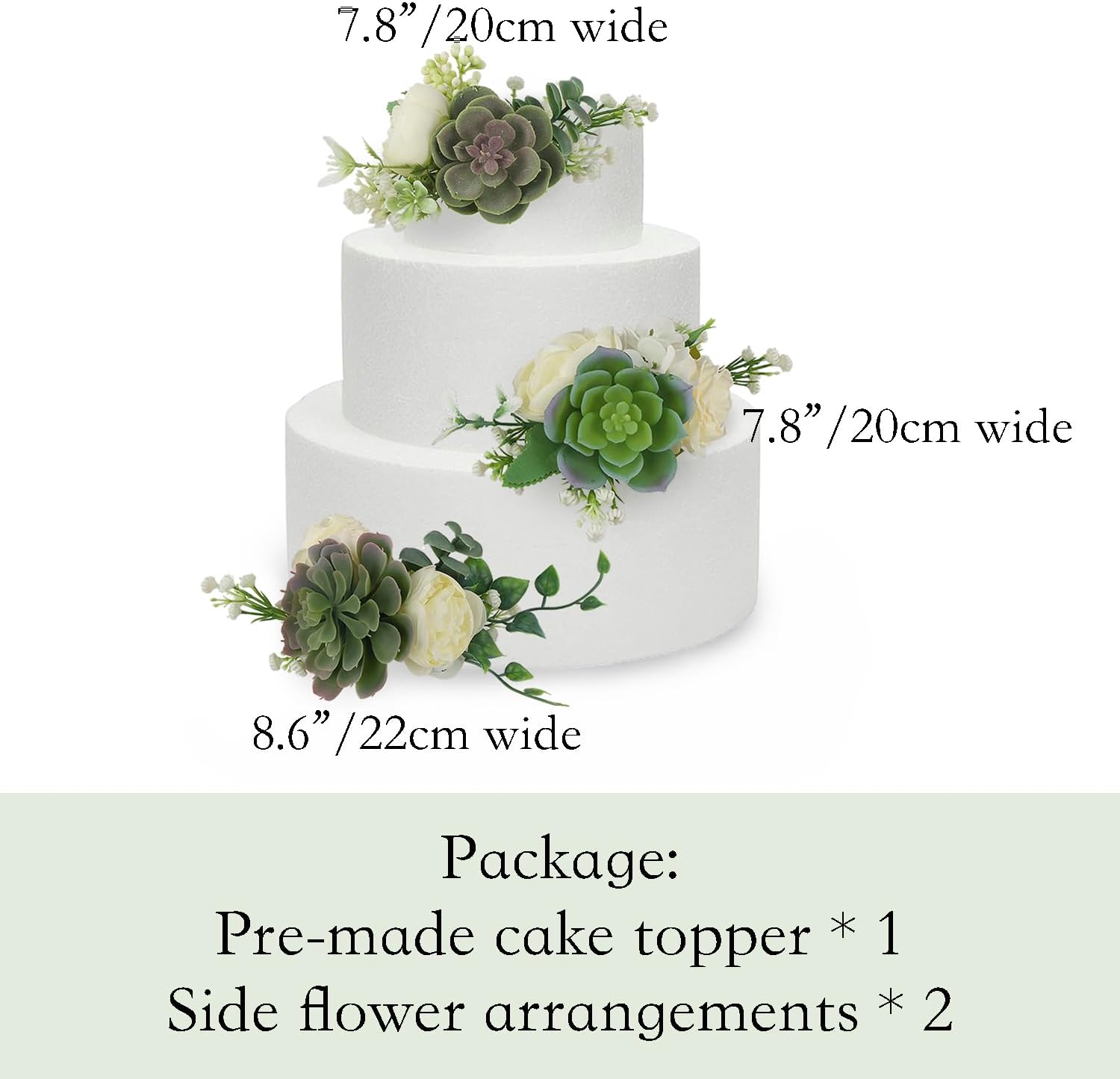 - Elegant Cake Flower Arrangemet Set - Package includes 1 x Cake topper, 2 x Side flower arrangements