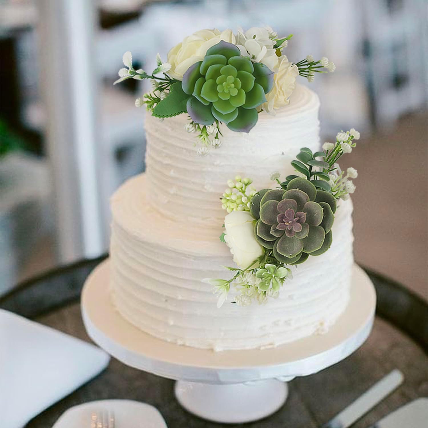 Rinlong Pre-made 3Pcs Faux Succulent Cake Decorating Flowers Cake Toppers Green Cake Decorations Wedding Birthday Baby Shower Spring Cake Decor Topper