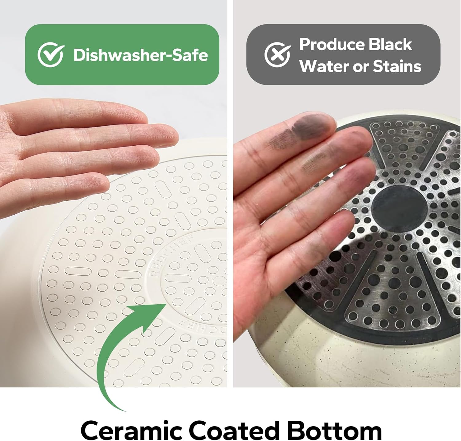 - CERAMIC NON-STICK COATING: Our innovative cooking surface undergoes a triple-layer ceramic coating process, fortified for unmatched food release. The nonstick frying pans excels in delivering outstanding nonstick performance, enabling you to prepare your favorite dishes with minimal oil or butter usage