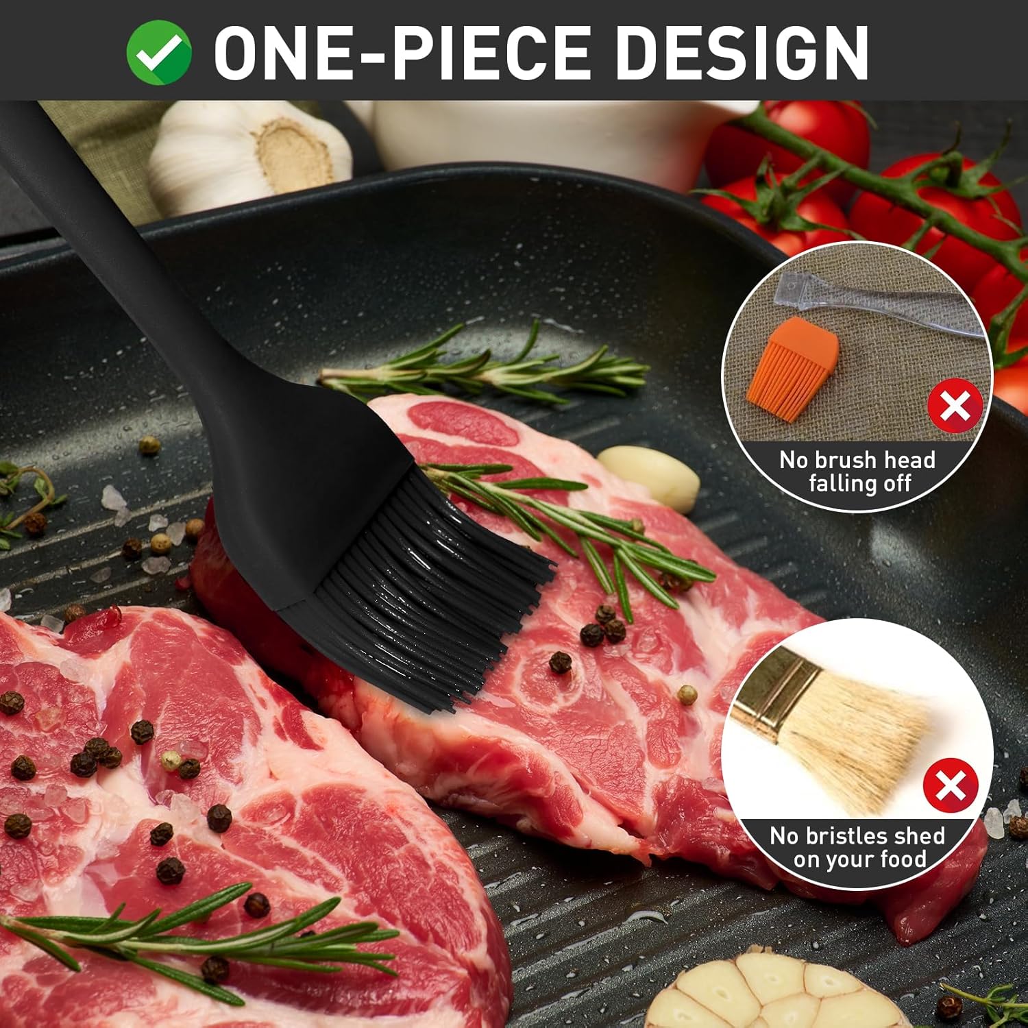 - Solid One-Piece Design with Stainless Steel Core: Upgraded one-piece design keeps you away from annoying with the brush head falling off or loosening up while spreading. With the durable silicone bristles, you don’t need to worry bristles break or shed on your food. Stainless steel core results in a solid durability to our basting brush; cover in silicone, the handle provides a comfortable, firm grip making basting easy, let you enjoy a delightful using experience while cooking.