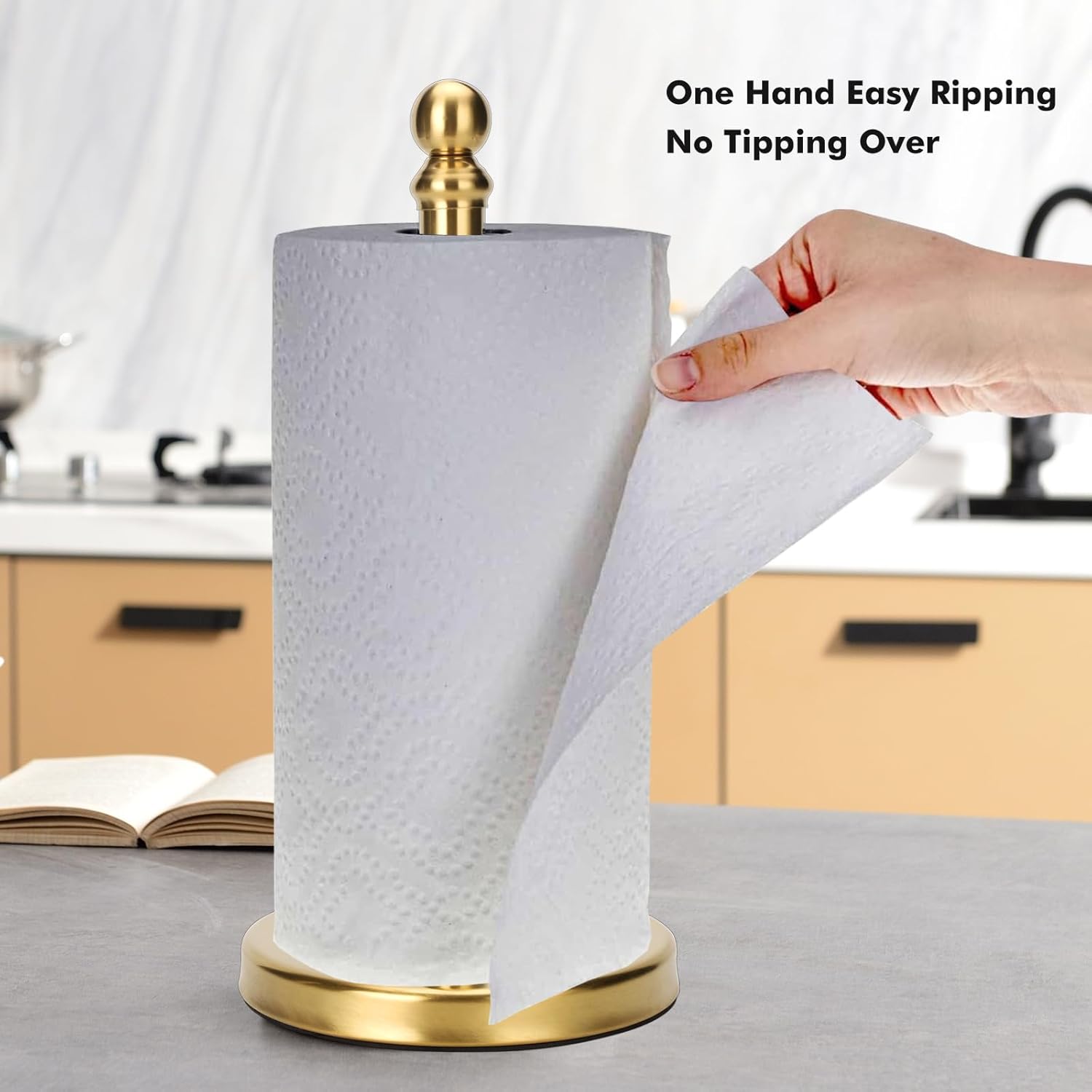 Gold Paper Towel Holder Countertop, Standing Paper Towel Roll Holder for Kitchen Bathroom, with Weighted Base for One-Handed Operation (Gold)