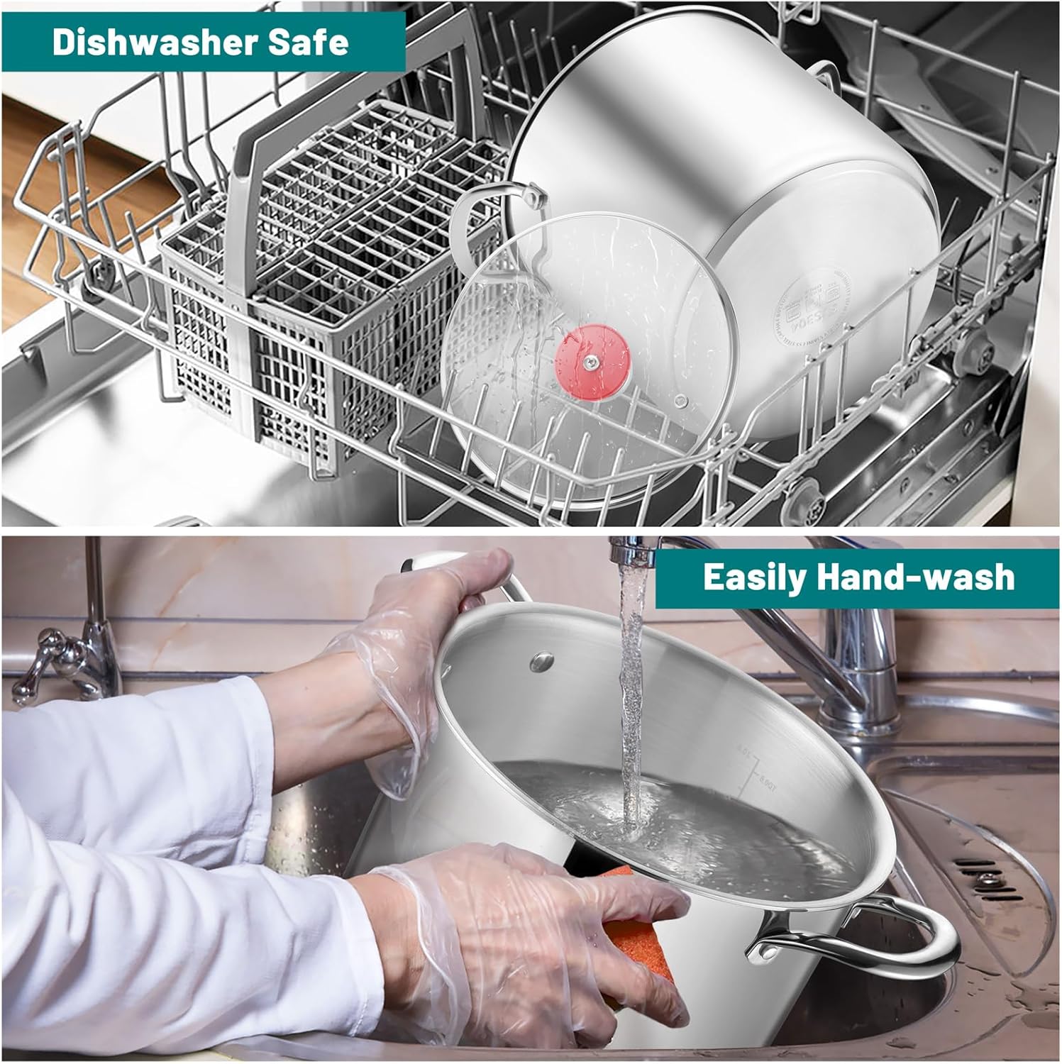 - DISHWASHER SAFE – The 10 quart stock pot internal brushed surface is wear resistance and less food sticking on the bottom, External mirrored surface keeps shiny and stylish, Both the pasta pot and glass lid are super easy to hand-wash with soft sponge and dishwasher safe to save your time, An ideal gift for your families and friends at Christmas, Halloween, Birthday, House Warming, etc.