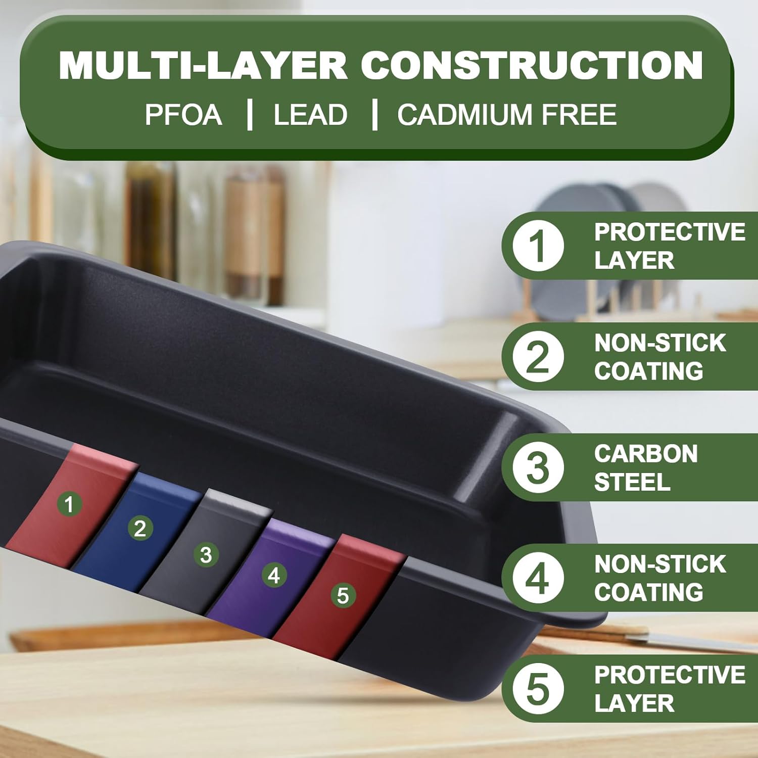 - 【SUPERIOR NONSTICK TECHNOLOGY】- Our non-stick oven baking set is shielded with a superior nonstick coating that emits no weird odors or smells, and is also scratch-resistant ensures that the food will easily be released when cooked without sticking, cleanup is a breeze.