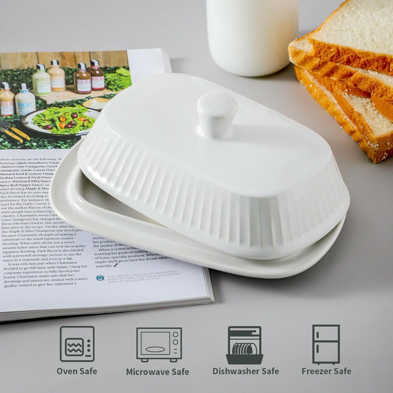 - Thoughtful and Functional Design: The butter container features a practical handle for easy lifting and secure closure. The built-in ridge keeps the butter centered, preventing messes and ensuring a convenient, mess-free experience.
