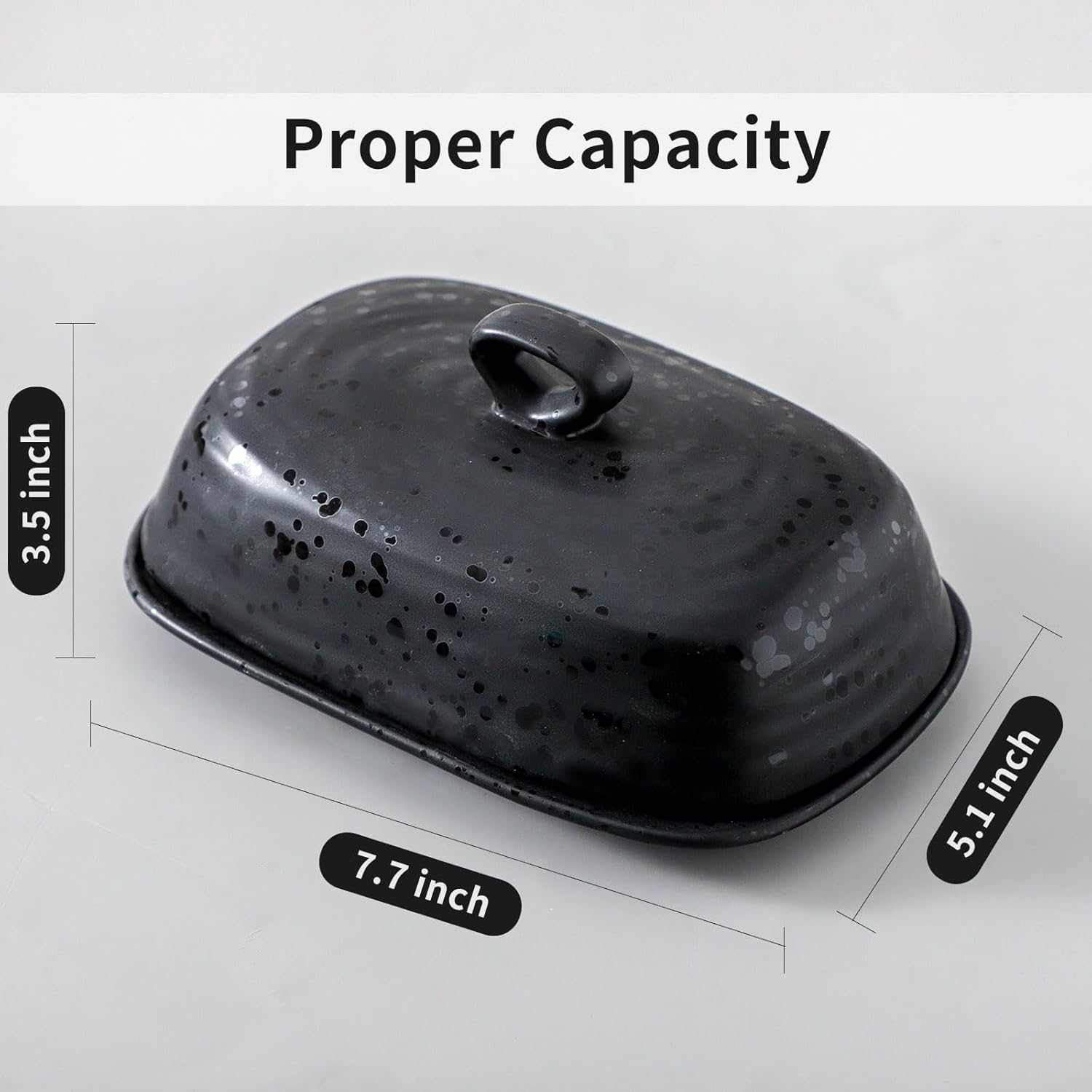 - Perfect Size, Sleek Design: Boasting dimensions of 7.7 x 5.1 x 3.5 inches, this generously sized butter dish effortlessly accommodates most standard butter sticks. Its sleek design harmoniously integrates with various kitchen decors, introducing a touch of elegance to any countertop