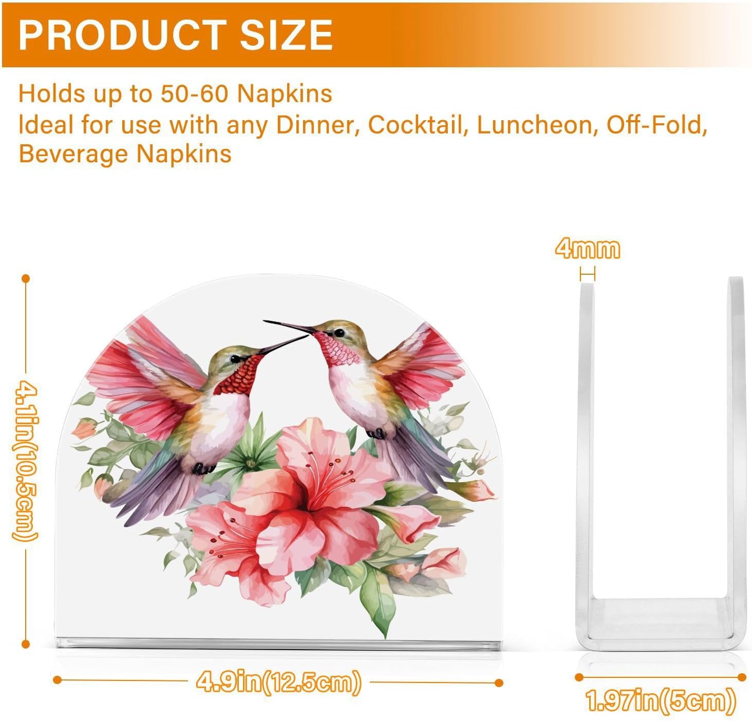 Hummingbirds Spring Floral Napkin Holder for Table Paper Napkins Holder Acrylic Tissue Dispenser Kitchen Dining Room Bathroom Party Car Decor
