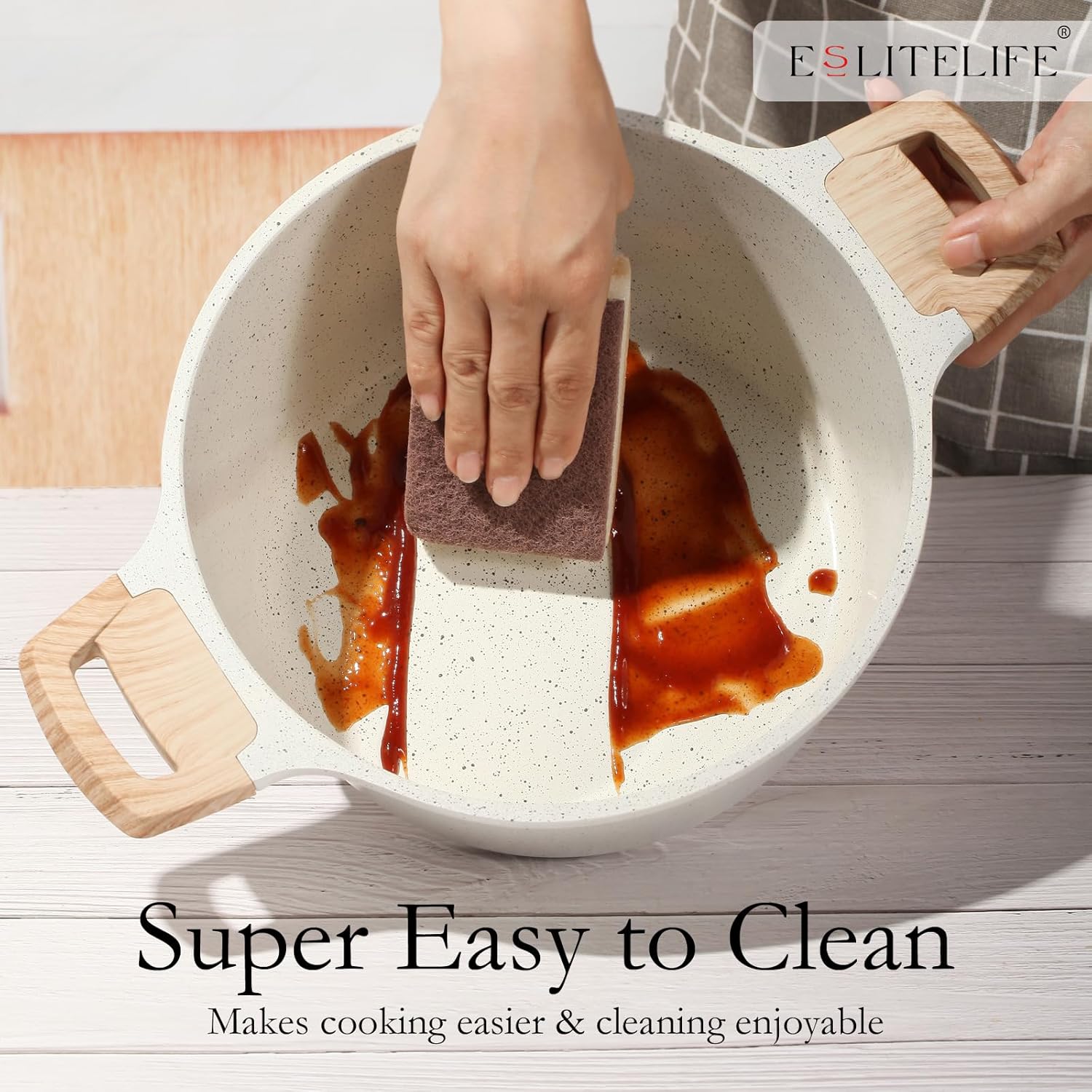 - Non-Toxic Ceramic Coating - ESLITE LIFE ceramic stock pot free of PTFE & PFOA, lead, cadmium and other toxic materials that can leach into your food, making them safe for you, your family and the environment.