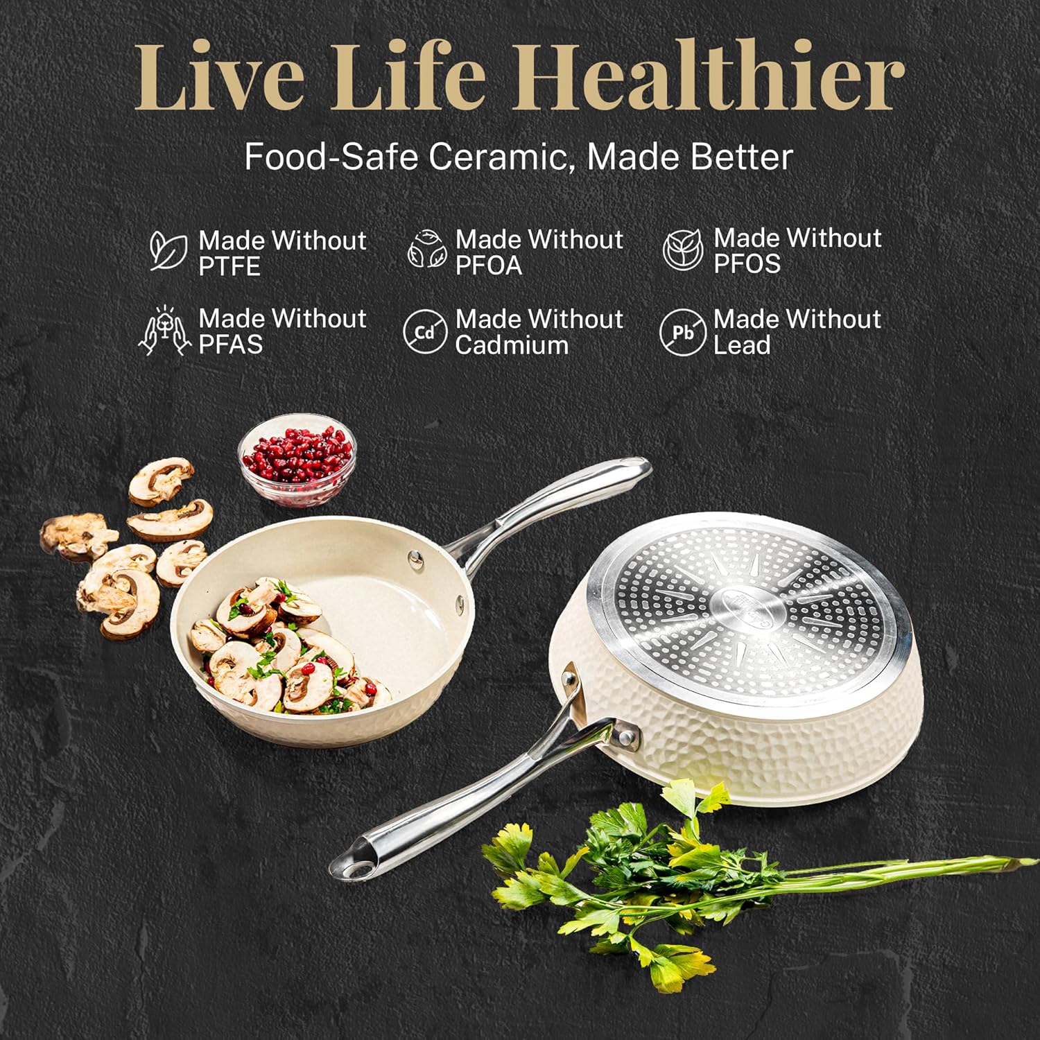 - ELEGANT HAMMERED DESIGN: Each piece of cookware features a classy, hammered design created to add style to any kitchen, providing a professional cooking experience at home without compromising any style.