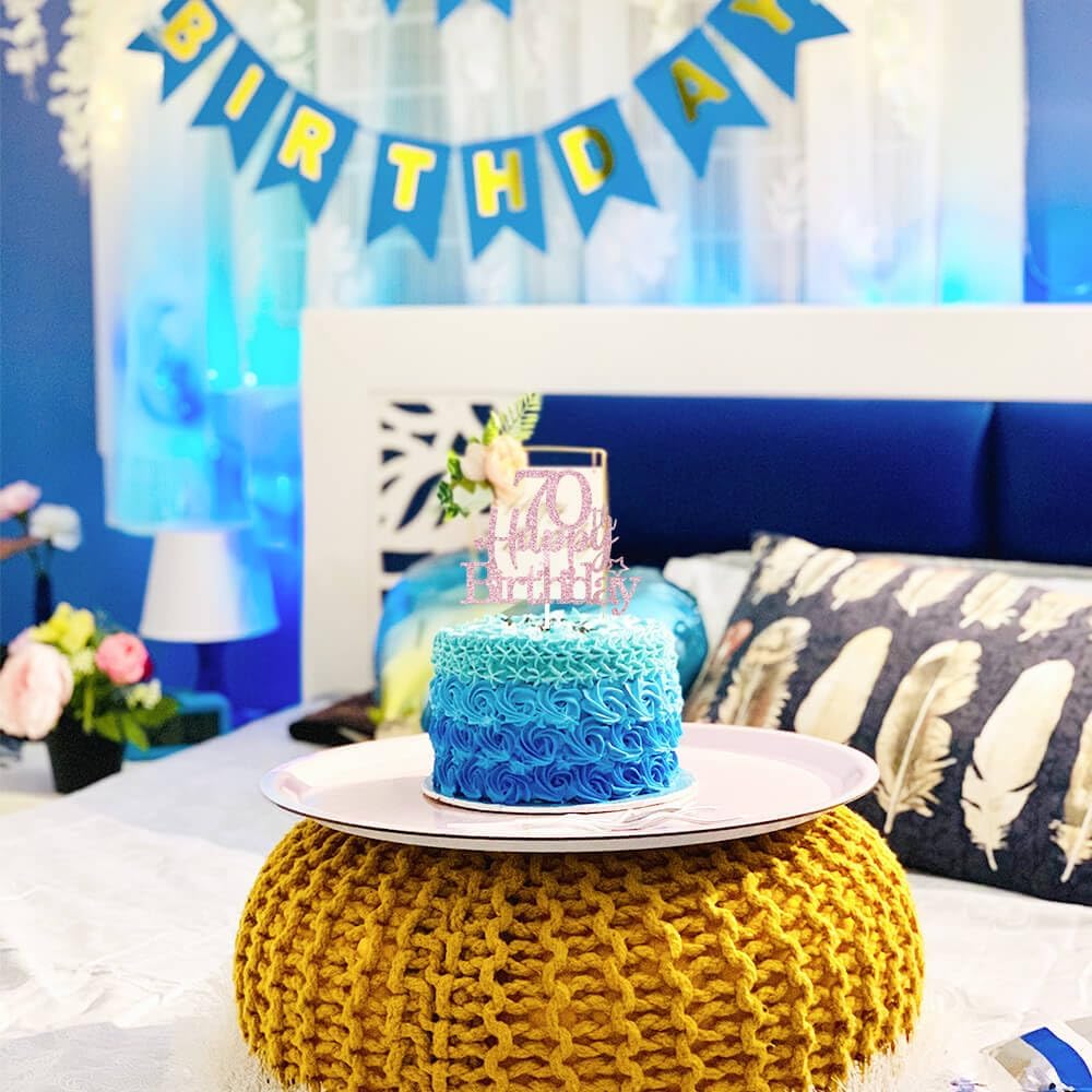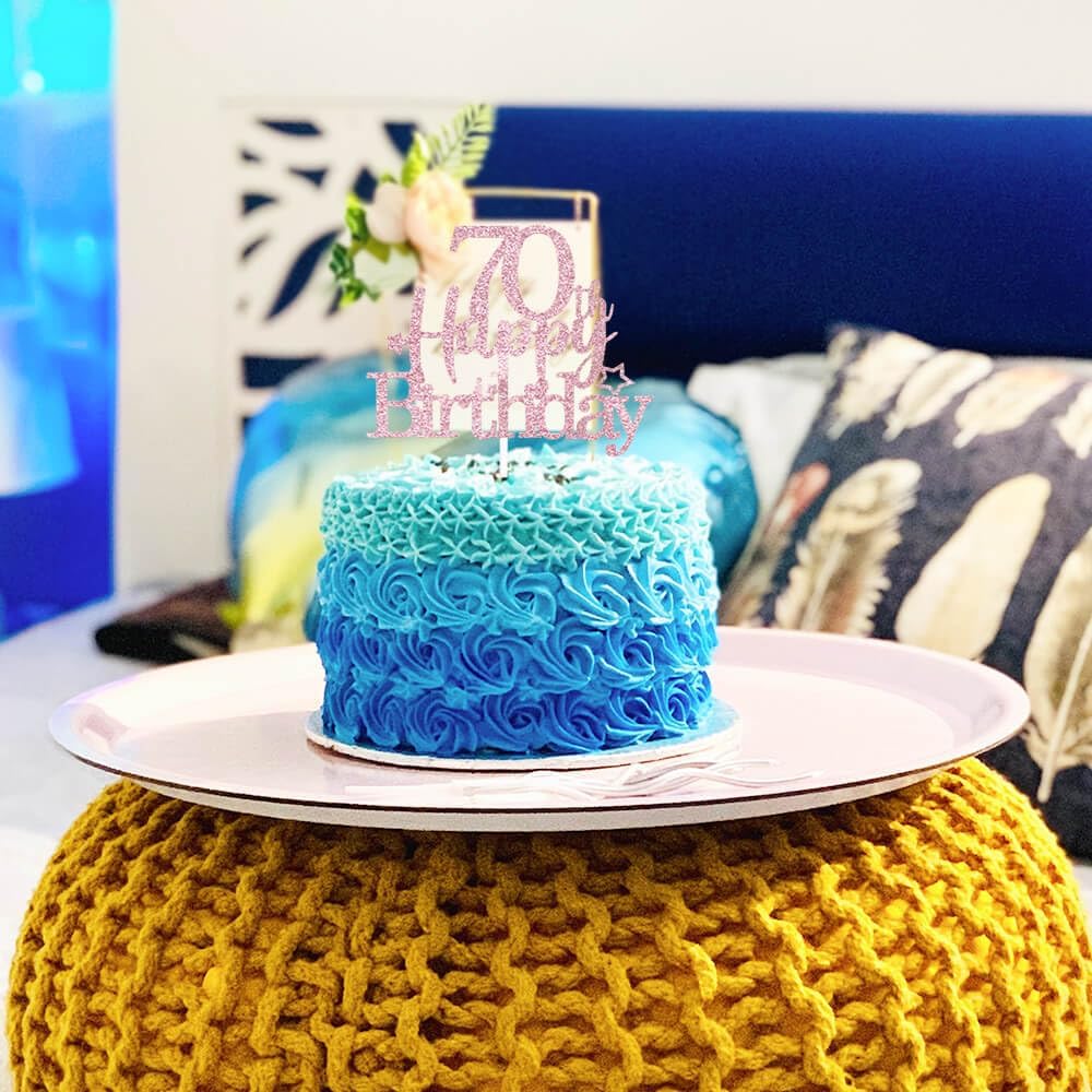 Glittery 70th Happy Birthday Cake Topper with Star,Personalised 70 Birthday Cake Toppers Party Decorations Party Supplies for Men Women Rose Gold