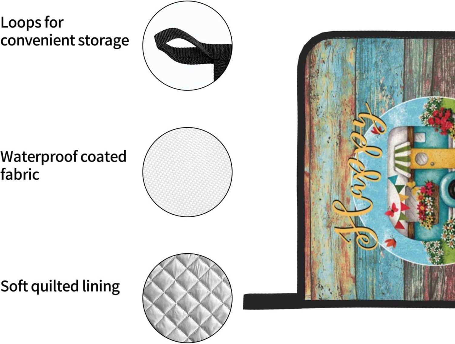 Happy Camper Oven Mitts and Pot Holders Sets of 4,Resistant Hot Pads with Polyester Non-Slip BBQ Gloves for Kitchen,Cooking,Baking,Grilling