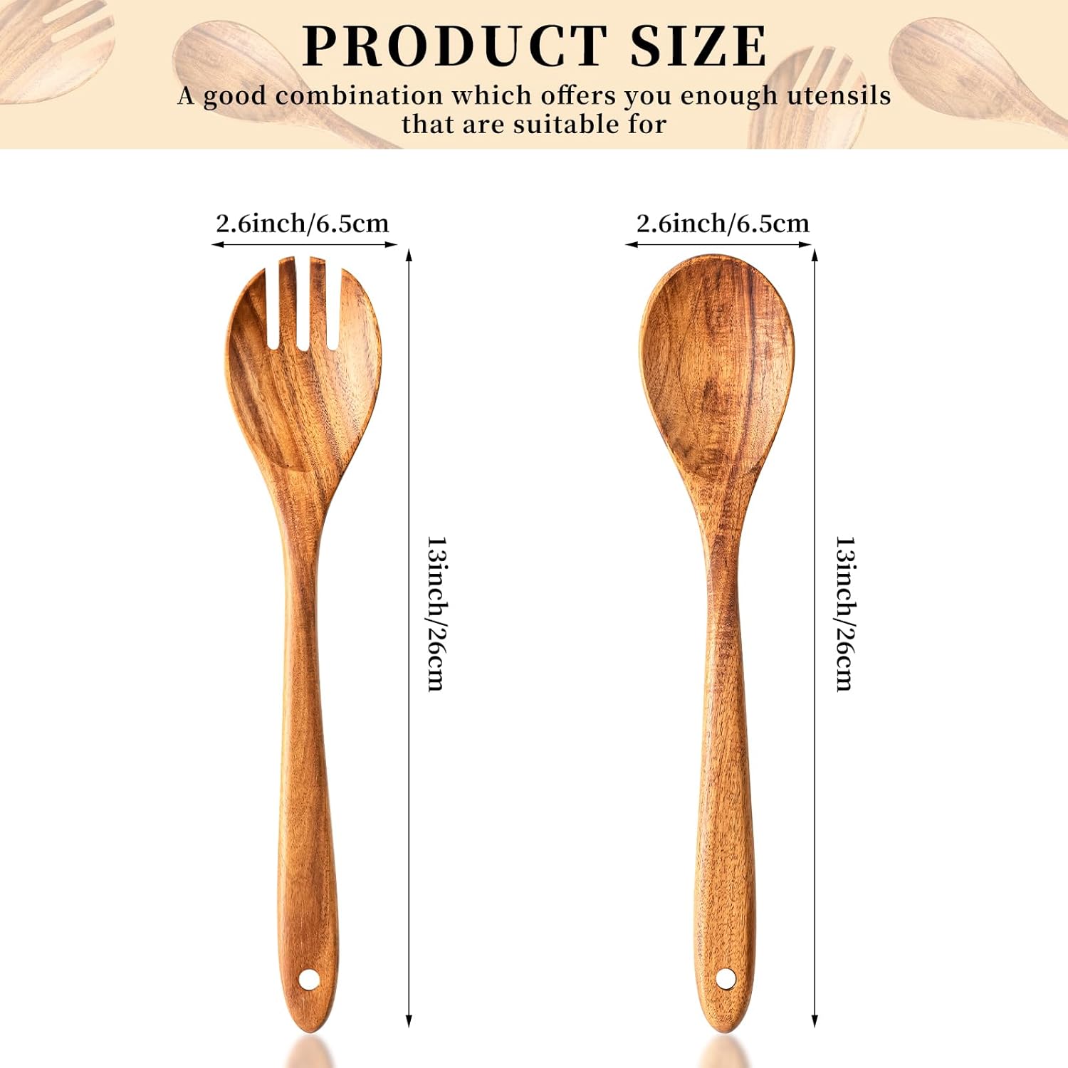 - Premium Quality Solid Acacia Wood: The wooden salad tongs Set is made from durable acacia wood with a tight grain and rich colour, making it a great material for salad tosser,the grain will vary, making each piece unique