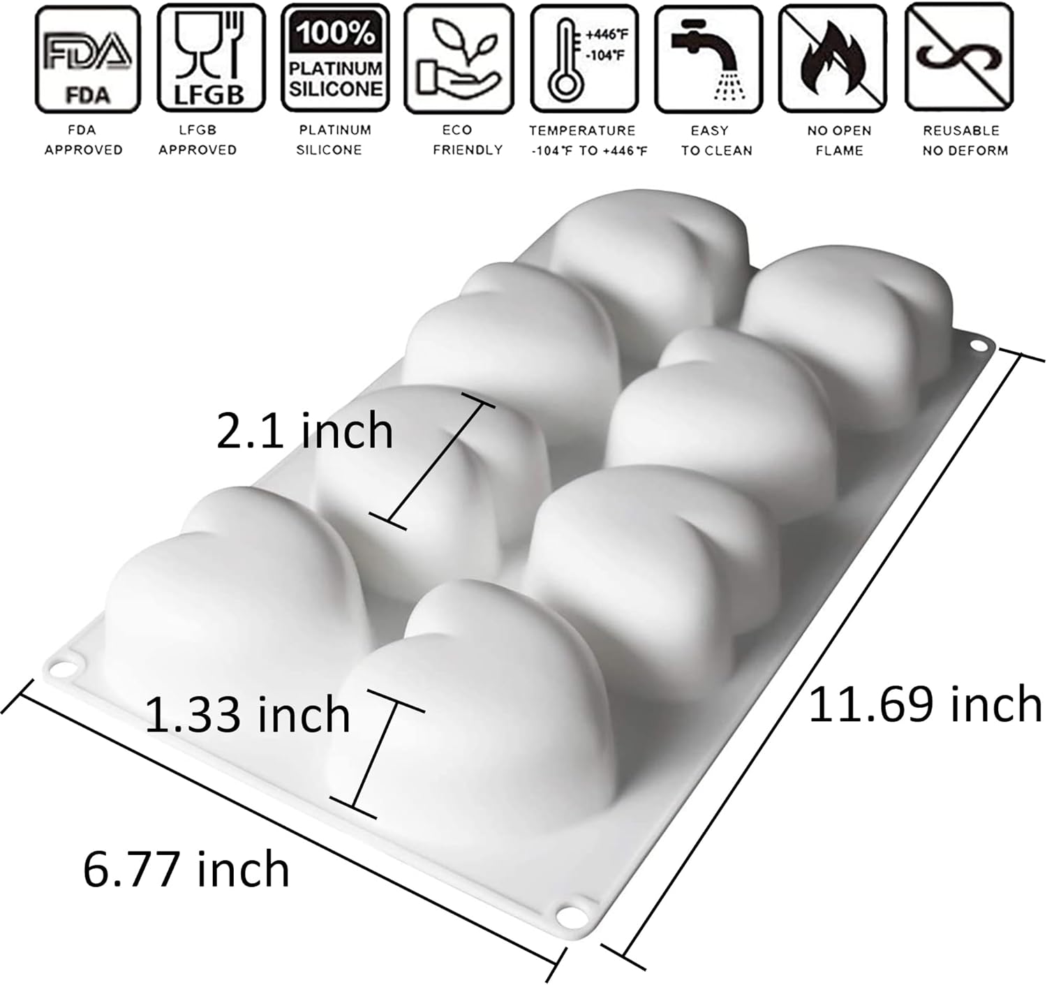 OCPO KITCHEN 3D Heart Silicone Molds for Baking Mousse Cake, 3D Silicone Baking Mold for Candy Pastry Chocolate Truffle Cupcake Jelly Cookie Pudding Cake Decoration Mold, 3D Heart Shape (8-Cavity)