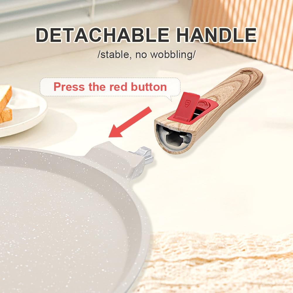 Non Stick Crepe Pan with Detachable Handle, 8 Inch Cast Aluminium Dosa Tawa Tortilla Pan, Pancake Pan Induction Compatible - White