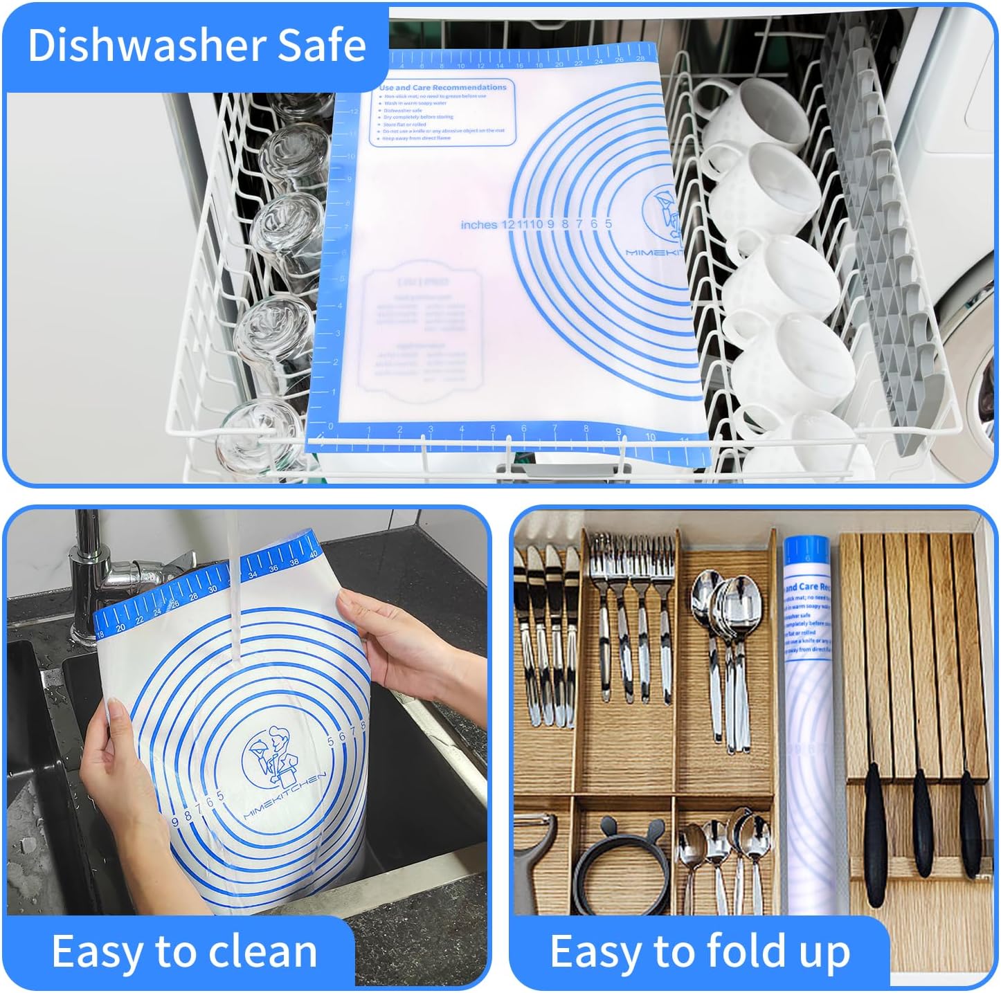 - 【Non-stick Pastry Dough Mat】:The non-stick working surface don't need flour to prevent sticking, the dough will slide, turn and roll easily! Even if grease or dough sticks to the surface, baking mat can be easily cleaned up. The non-slip bottom keeps the silicone mat staying in place on countertops well and won't slip and slide around.