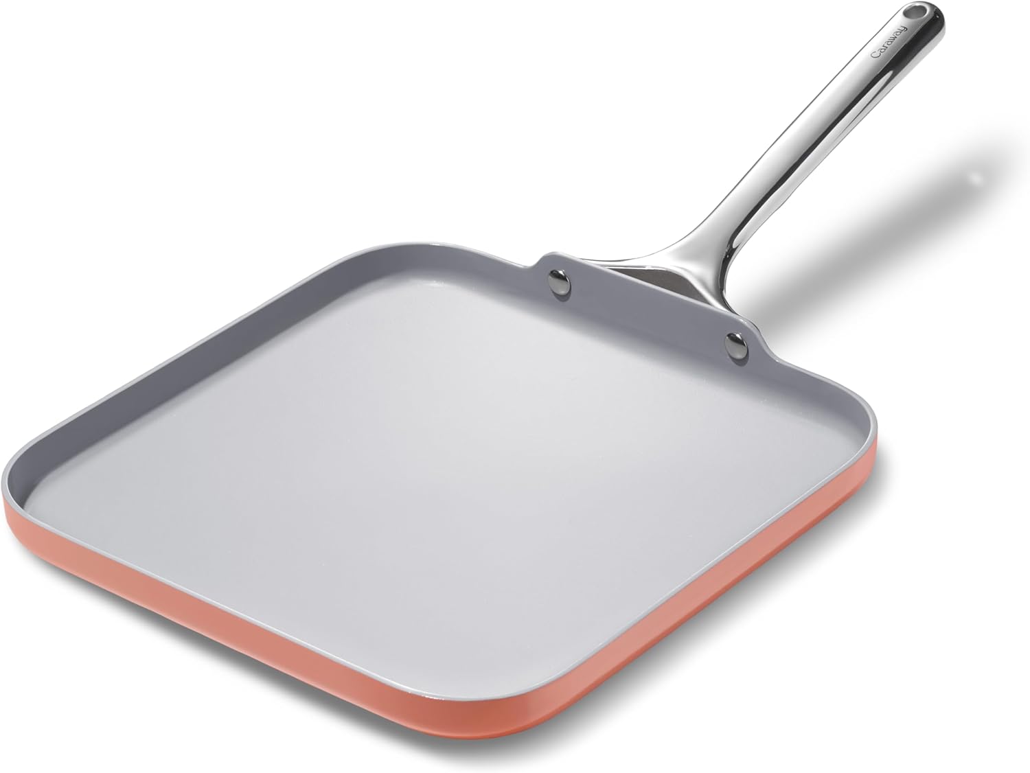 - BUILT FOR A CROWD: Flip burgers, eggs, pancakes, and more with ease on the Square Griddle Pan. Boasting nearly twice the cooking space of Caraway's classic Fry Pan, it's ideal for cooking a variety of dishes effortlessly.